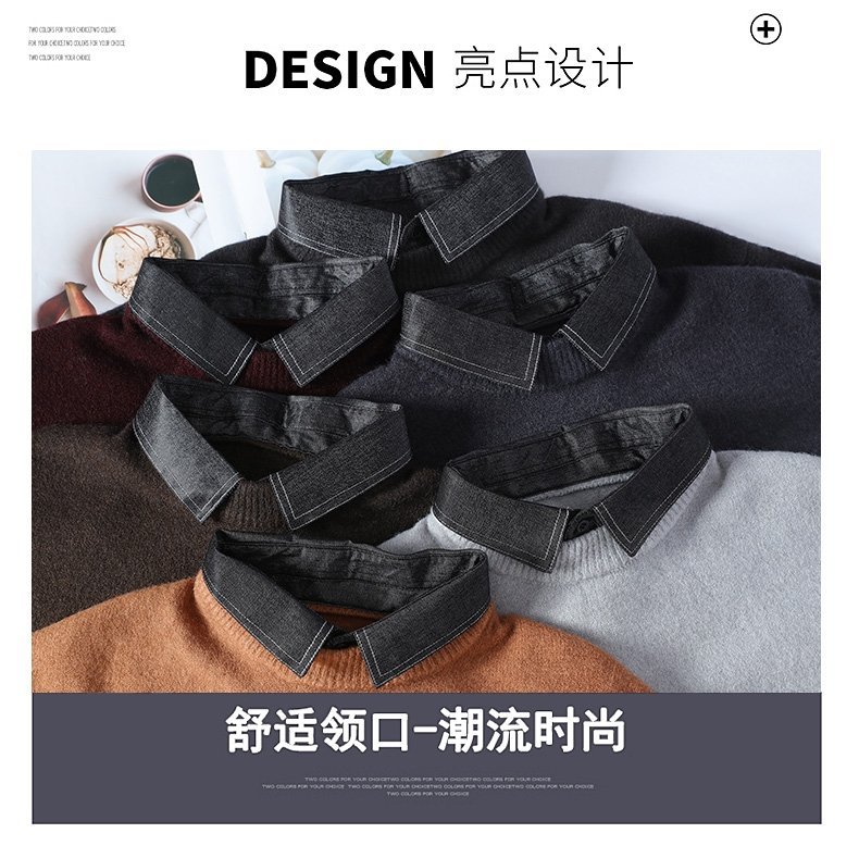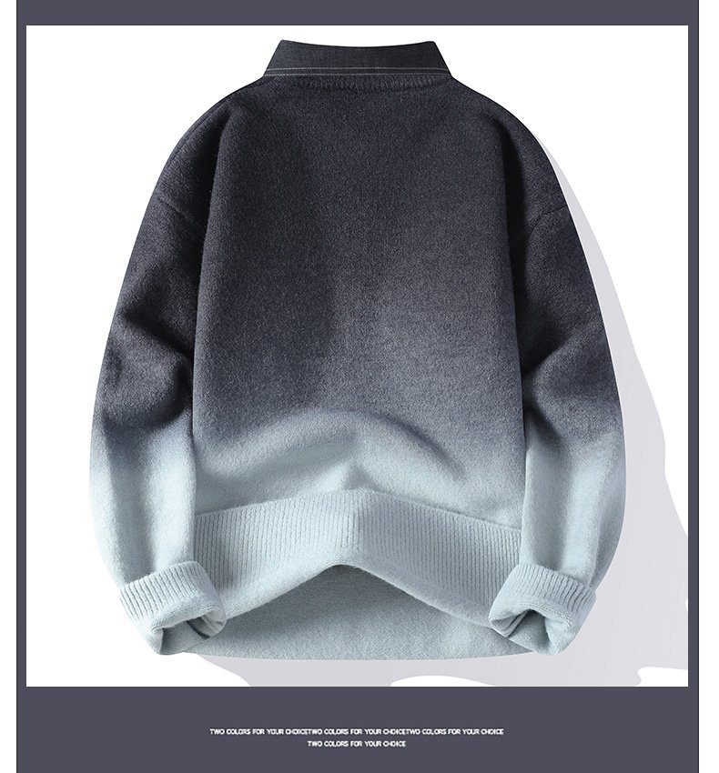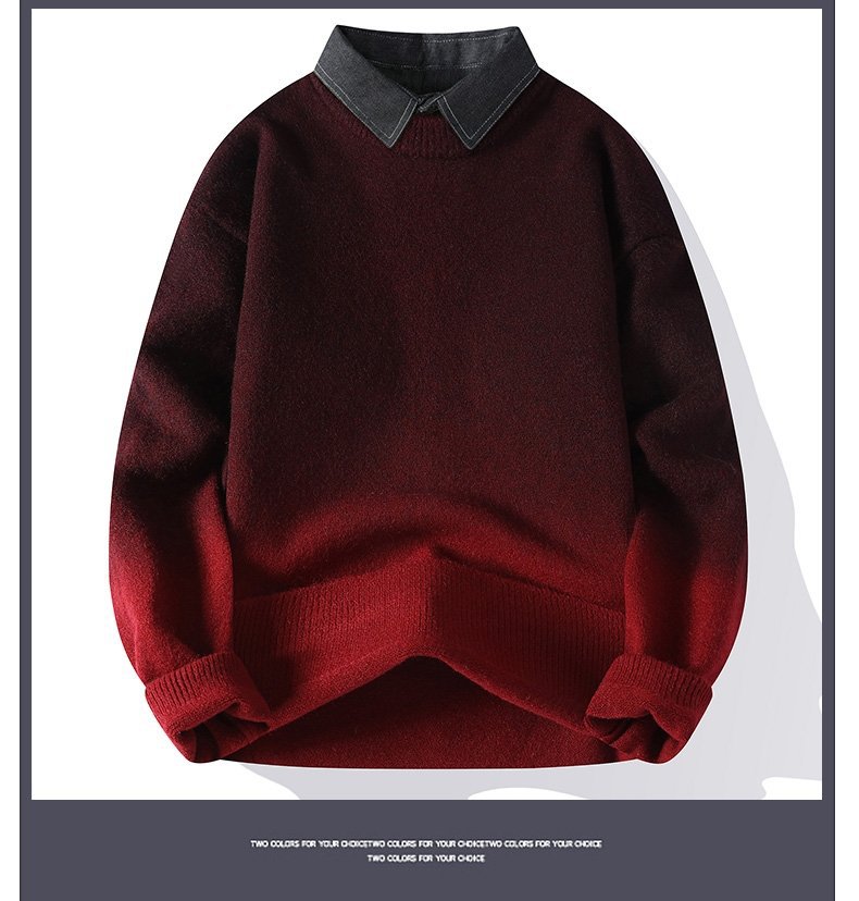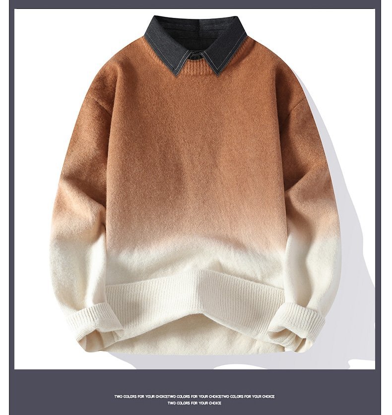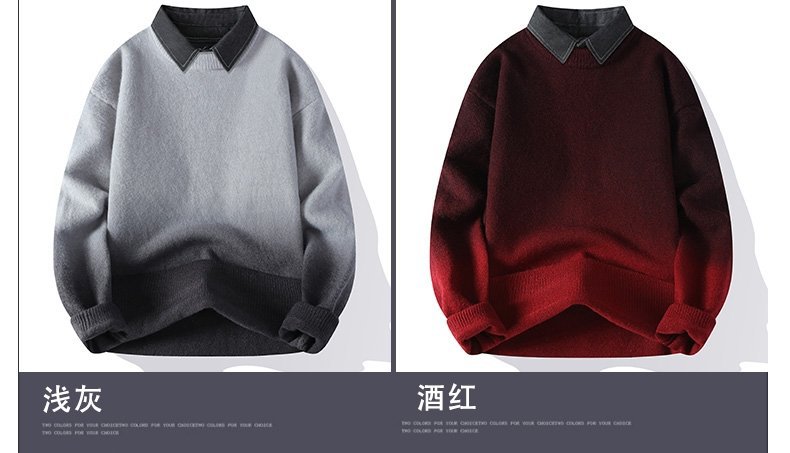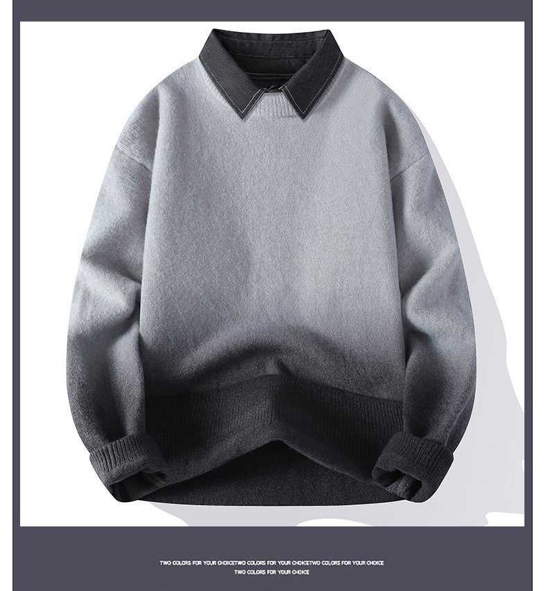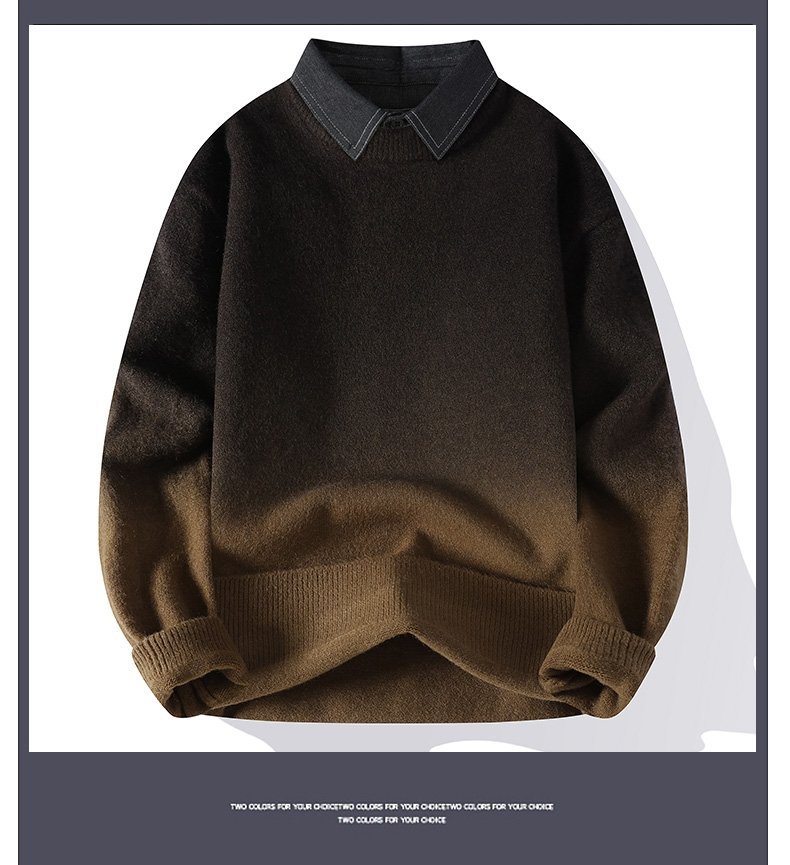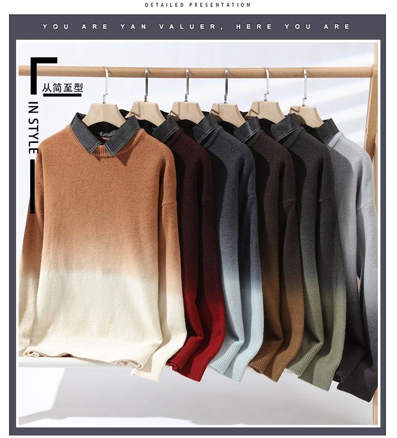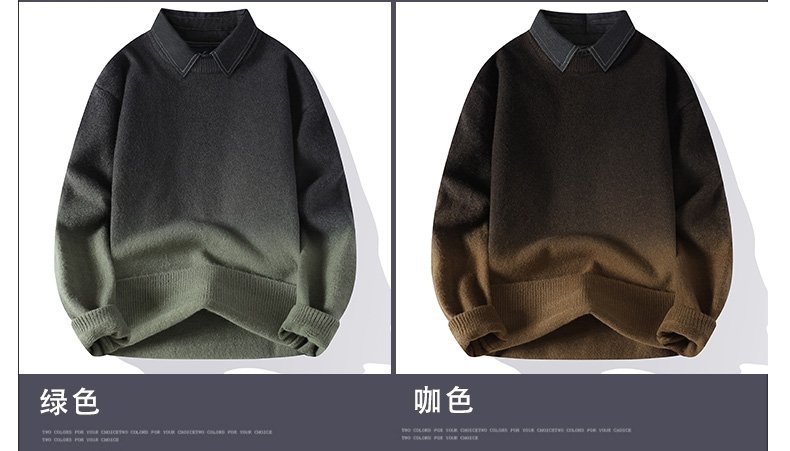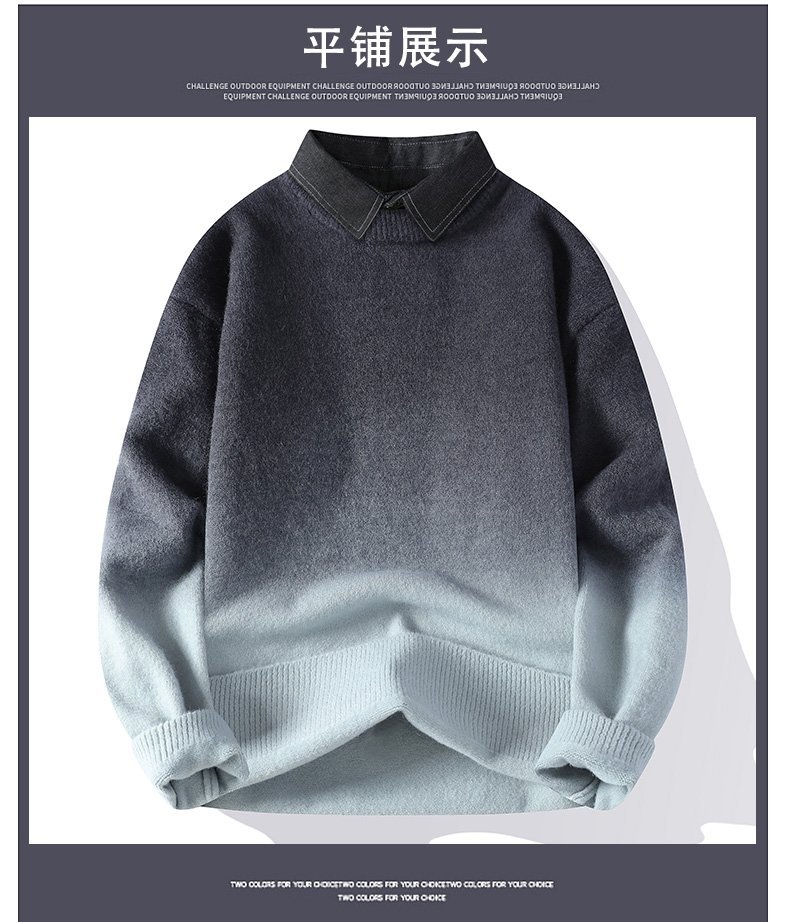 신상 그라데이션 스웨터 가을 겨울 그라데이션 니트 남성용 따뜻한 셔츠 칼라 페이크 투피스 스웨터스토어 가기