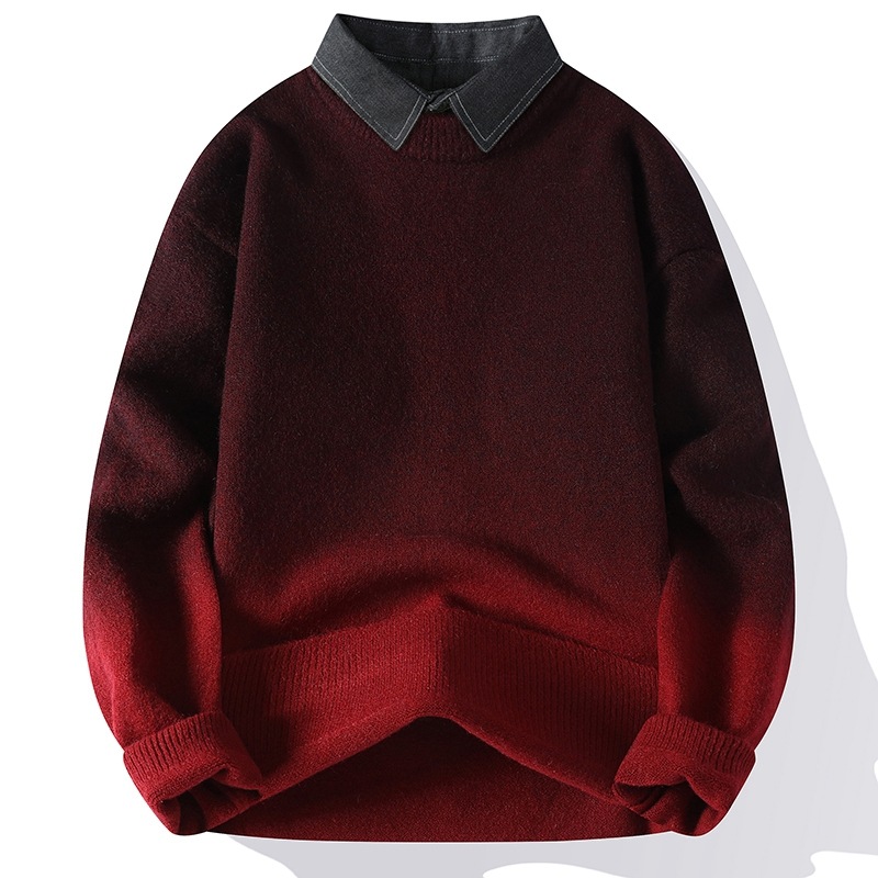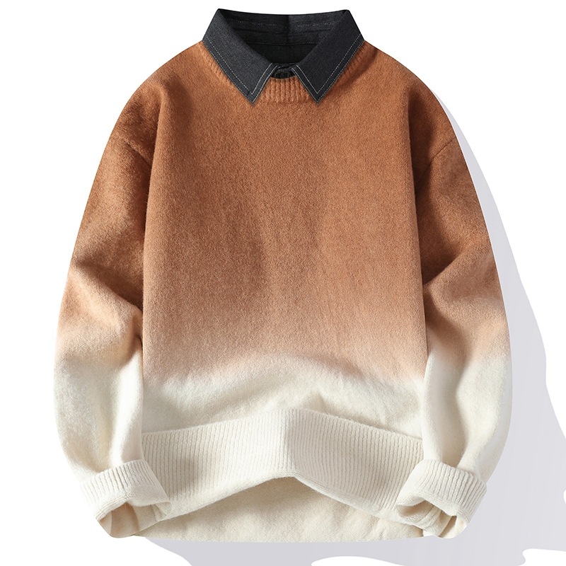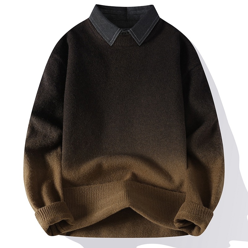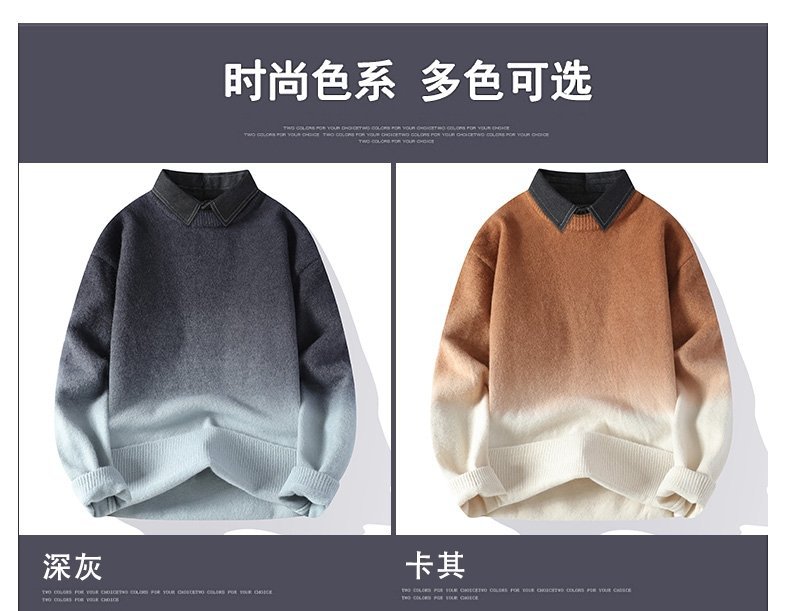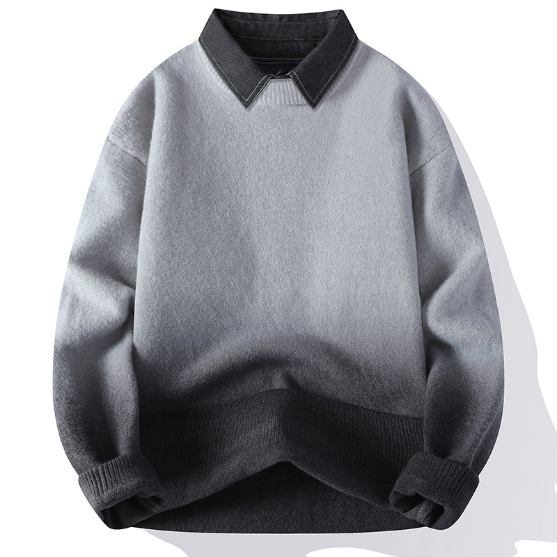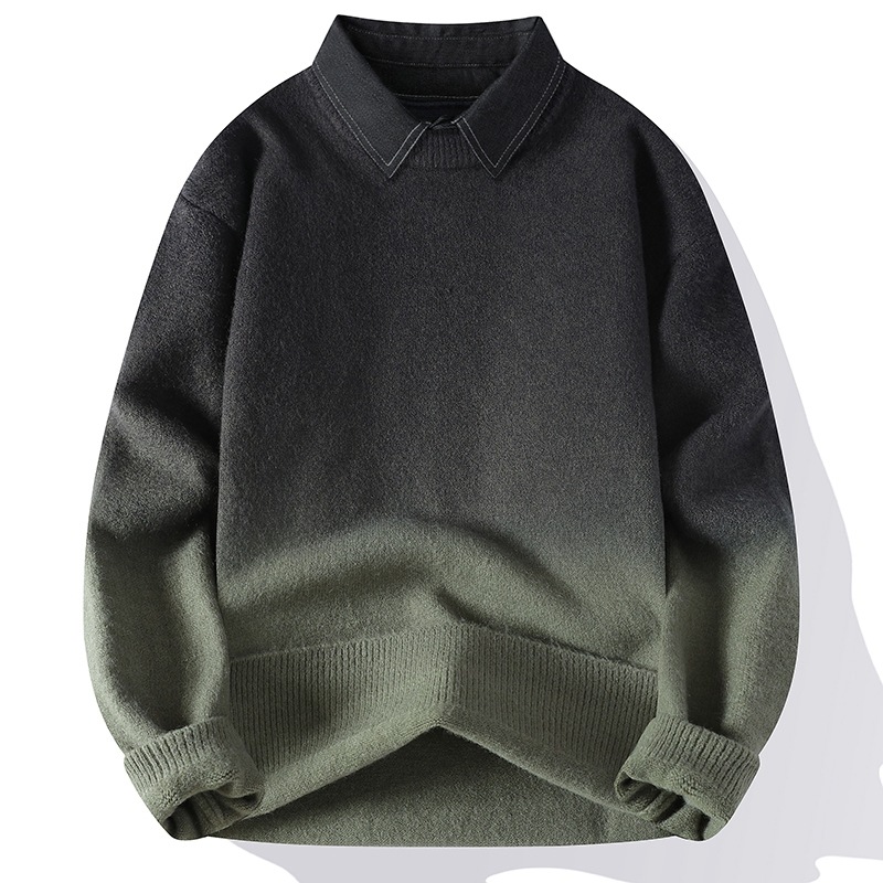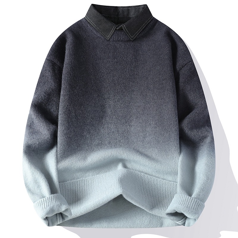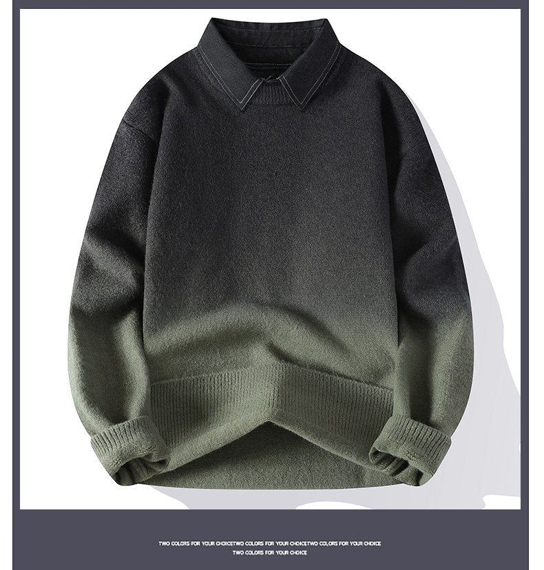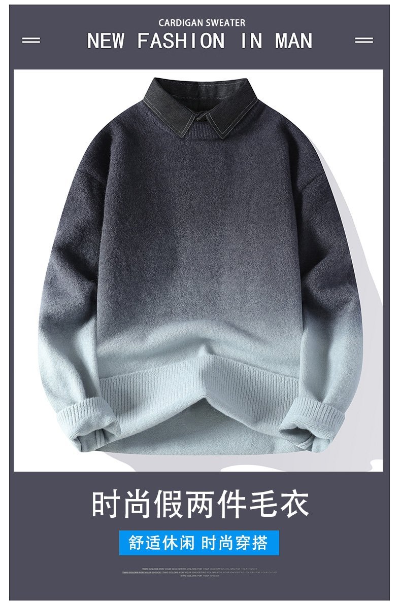 신상 그라데이션 스웨터 가을 겨울 그라데이션 니트 남성용 따뜻한 셔츠 칼라 페이크 투피스 스웨터
