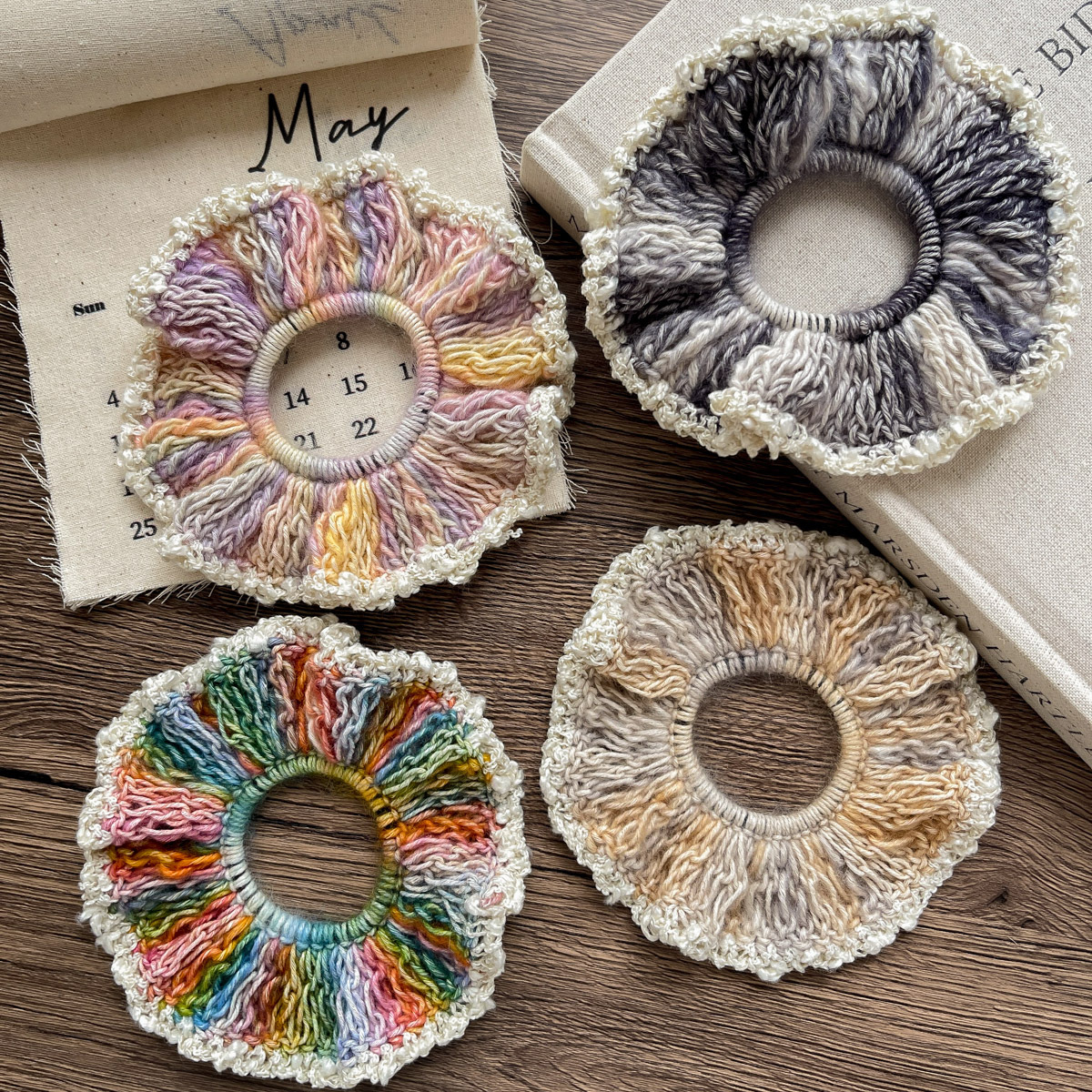 새로운 한국 스타일 달콤한 컬러 울 레이스 대장 헤어 링 기질 성숙한 헤어 로프 헤어 액세서리