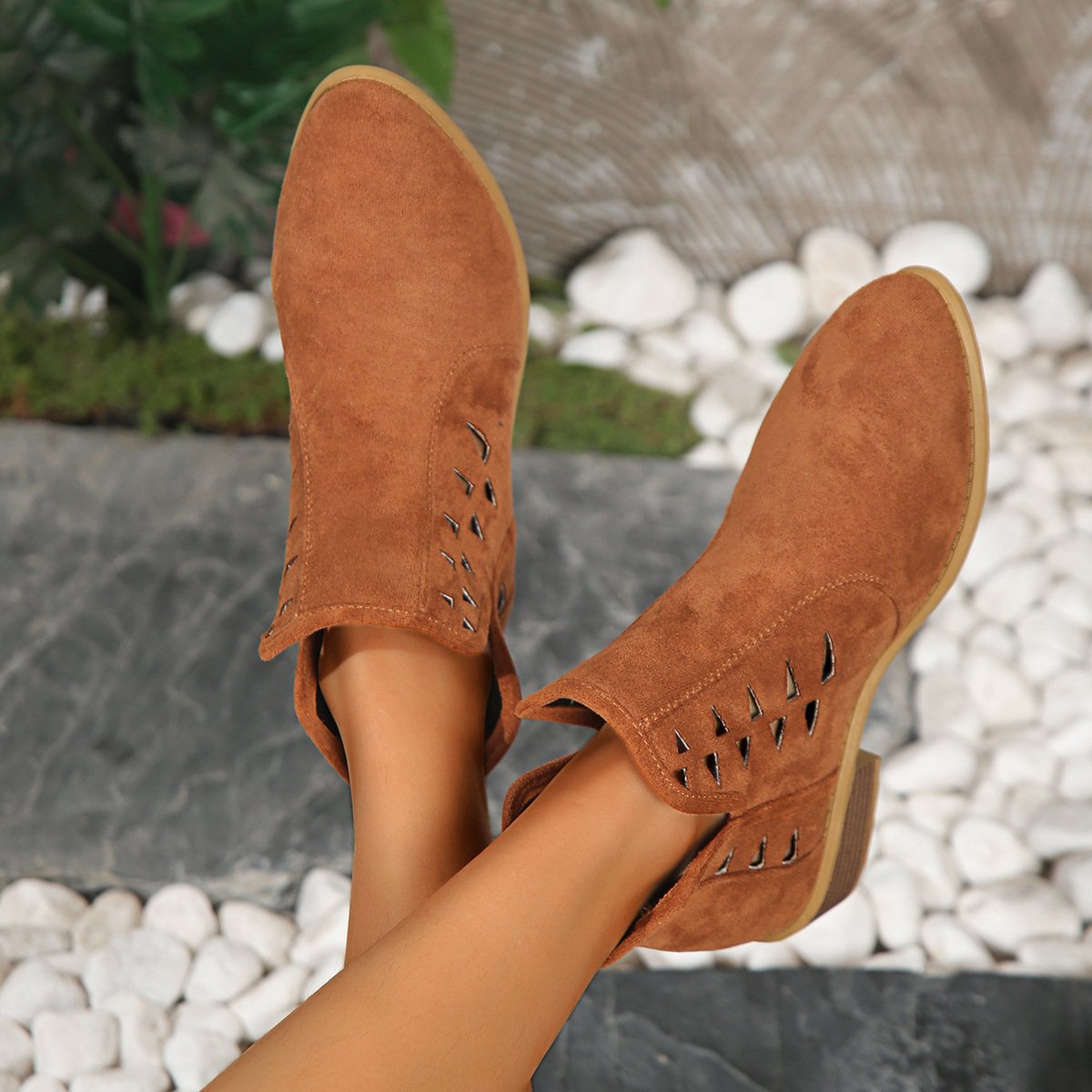 국경 간 플러스 사이즈 패션 여성 부츠 중공 스퀘어 힐 라운드 헤드 짧은 올 매치 새로운 휴일 매일 발목 부츠 패션 여성 부츠스토어 가기