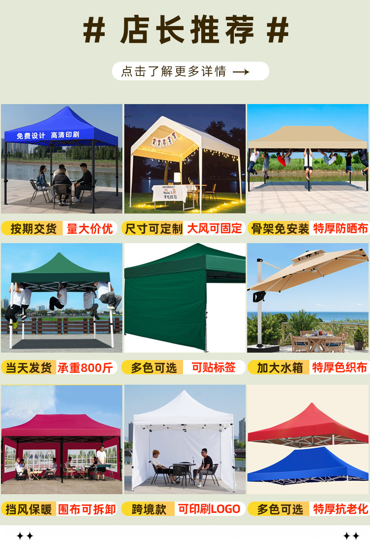 야외 활동 전시용 천막, 크로스보더 광고 텐트, 사각 접이식 판매용 대형 우산, 상업용 전시용 뾰족한 천막스토어 가기