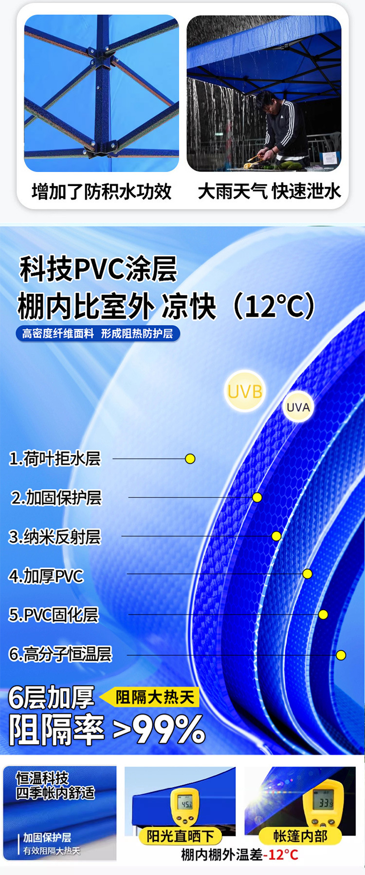 야외 활동 전시용 천막, 크로스보더 광고 텐트, 사각 접이식 판매용 대형 우산, 상업용 전시용 뾰족한 천막