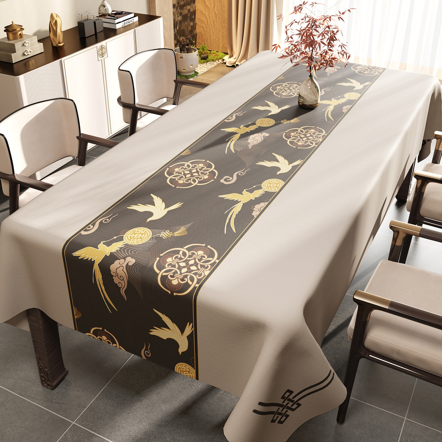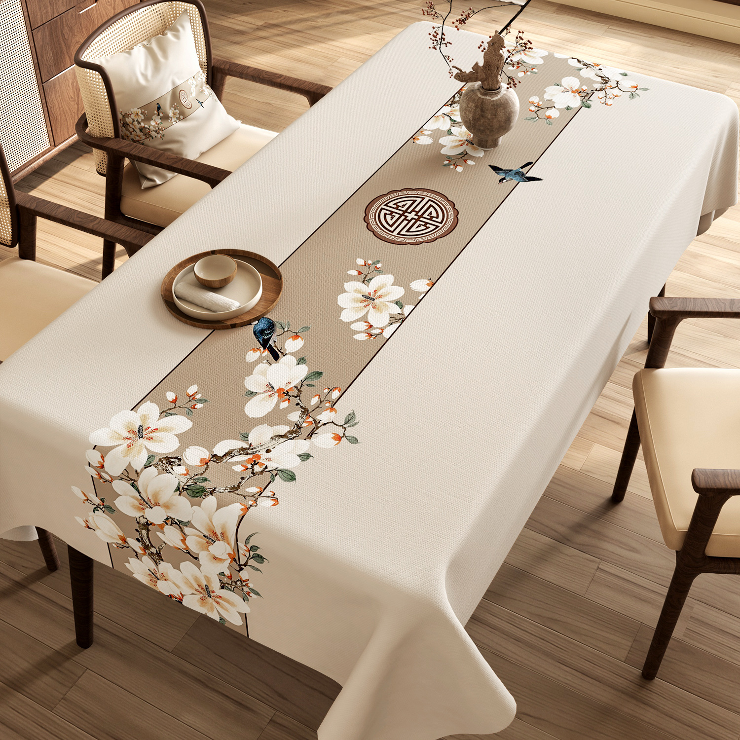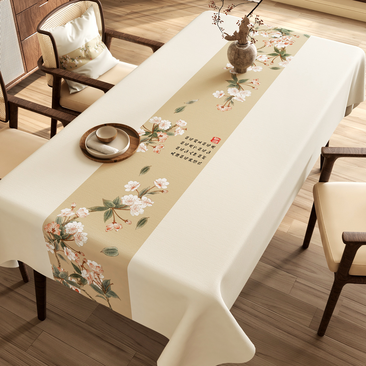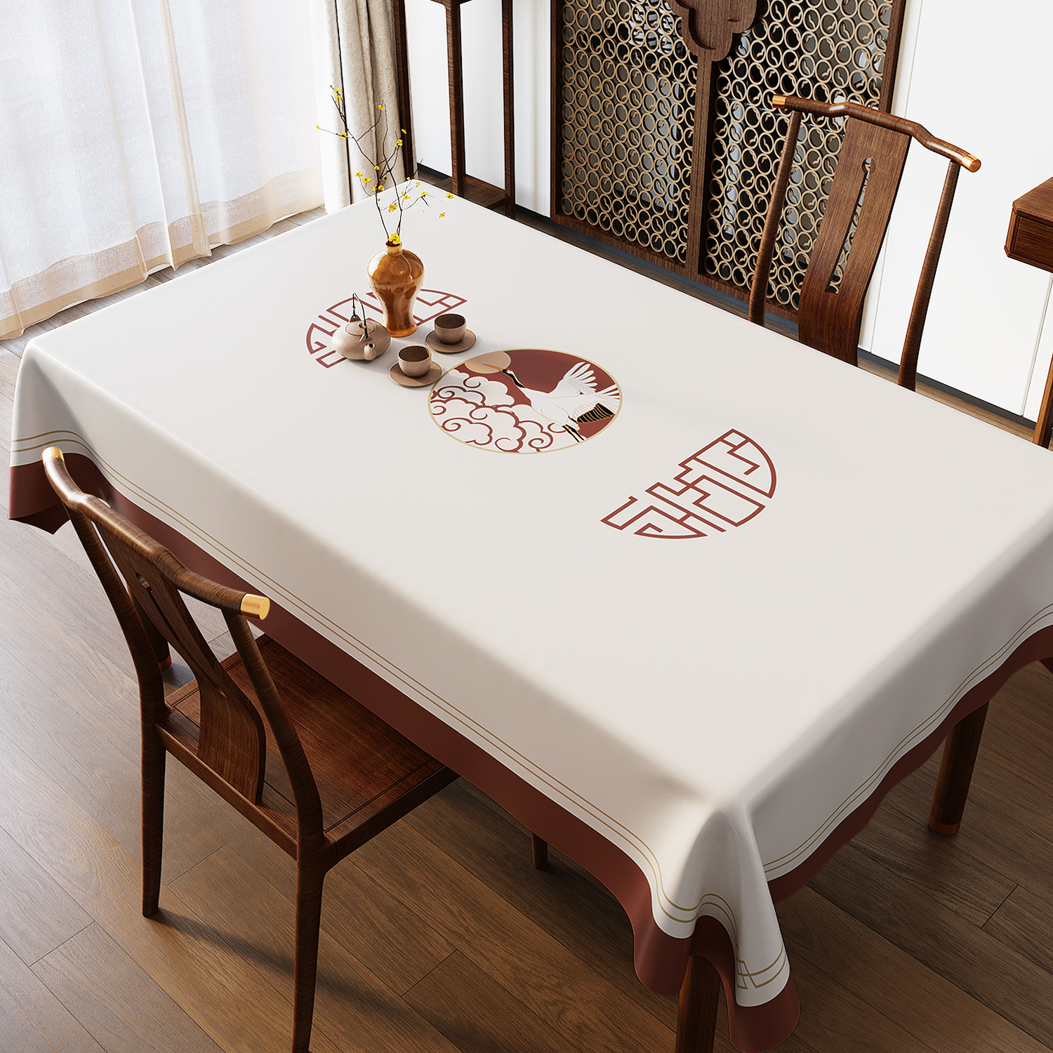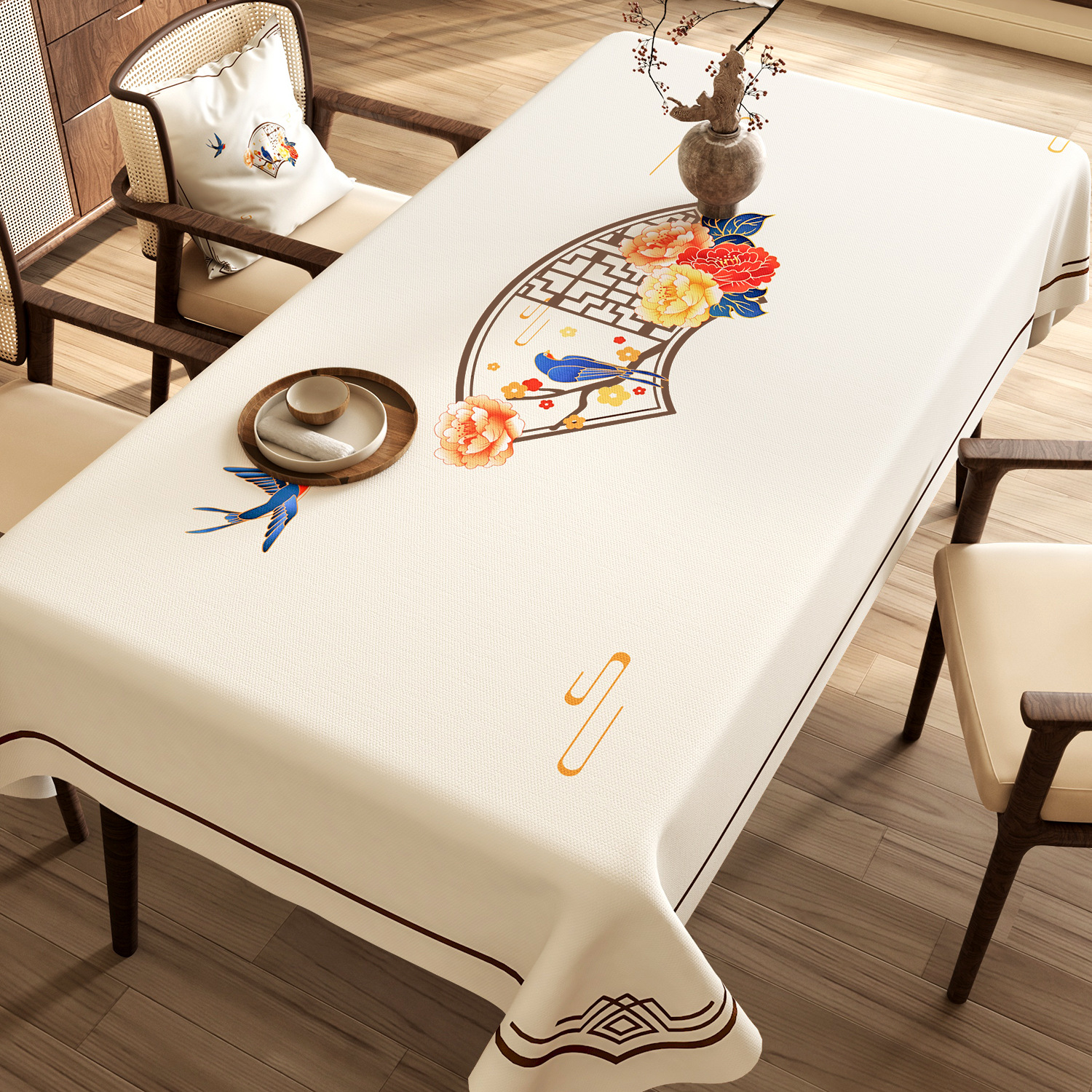 식탁보 국가 스타일 새로운 중국 스타일 방수 및 내유가없는 직사각형 식탁 가벼운 고급 고급 고급 2024 새로운 스타일의 식탁보