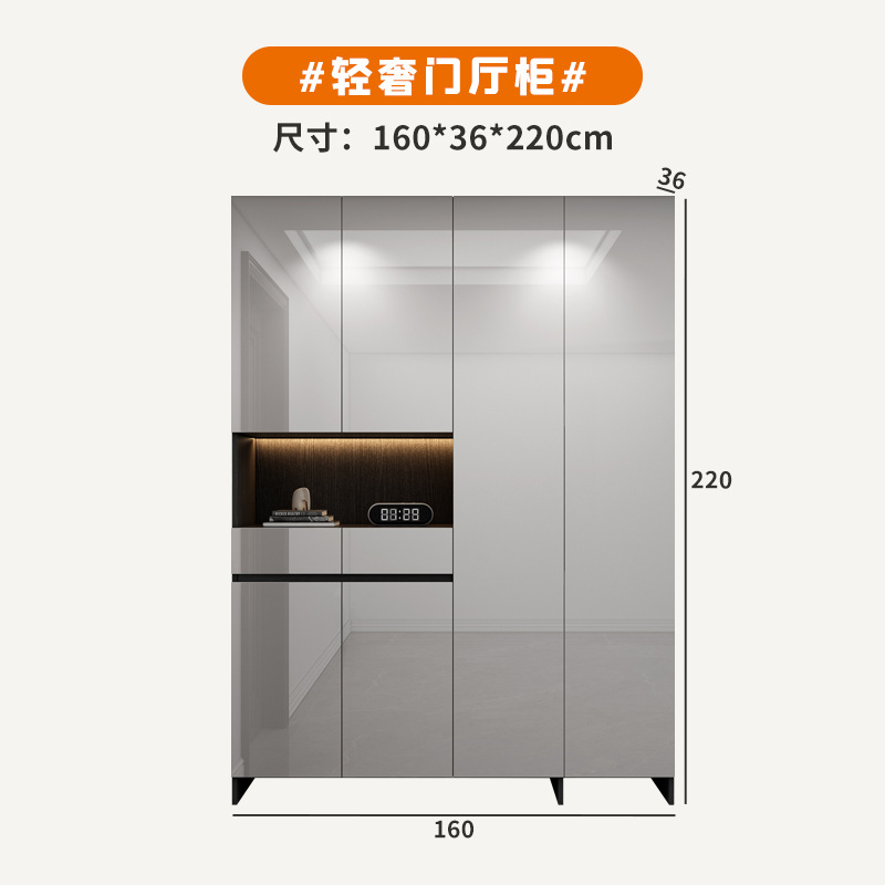 • 모델 A 길이 160 깊이 36 높이 220 (PET 고광택 캐비닛 도어) (두꺼운 16 후면 패널) 모란디 그레이