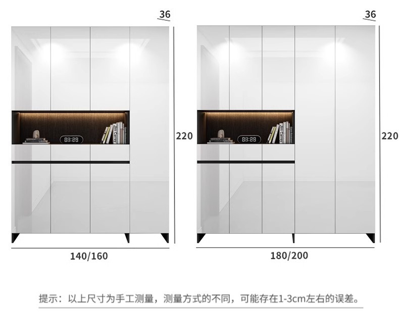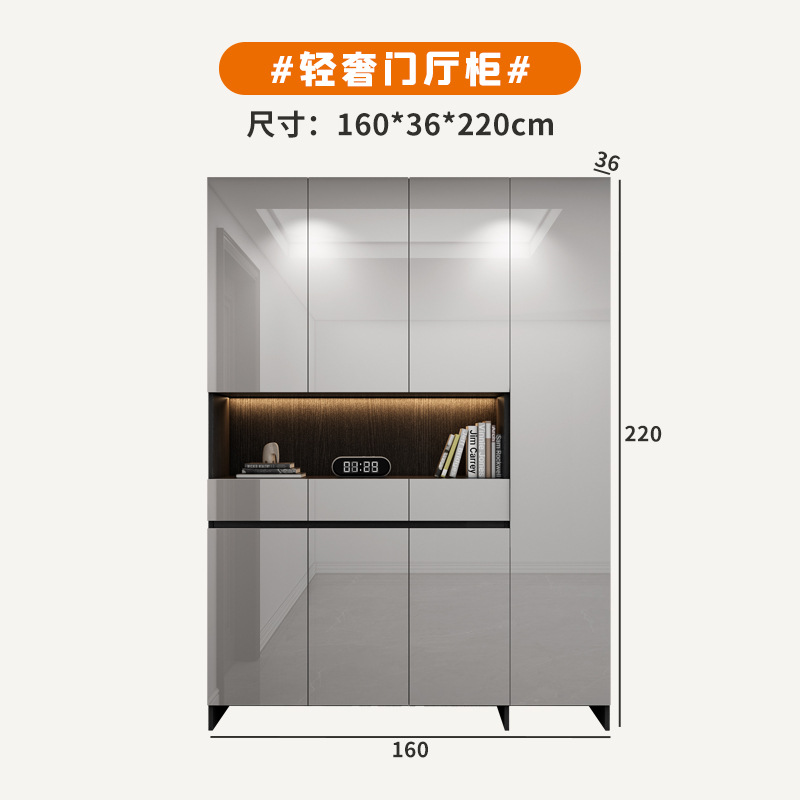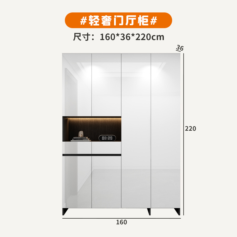 • 모델 A 길이 160 깊이 36 높이 220 (PET 고광택 캐비닛 도어) (두꺼운 16 후면 패널) 모란디 화이트