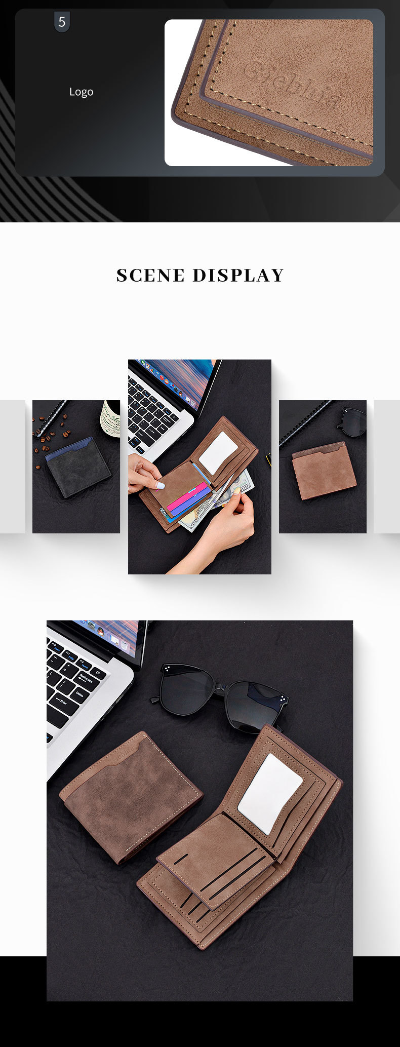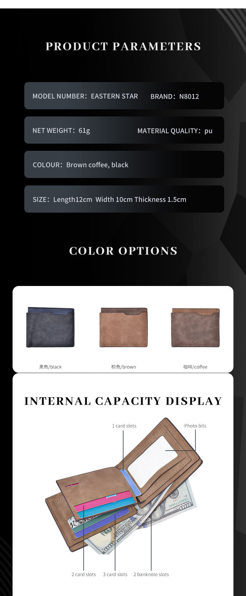 국경 간 새로운 남성 서리 짧은 지갑 다기능 패션 캐주얼 하이 퀄리티 PU 지갑 대형 재고
