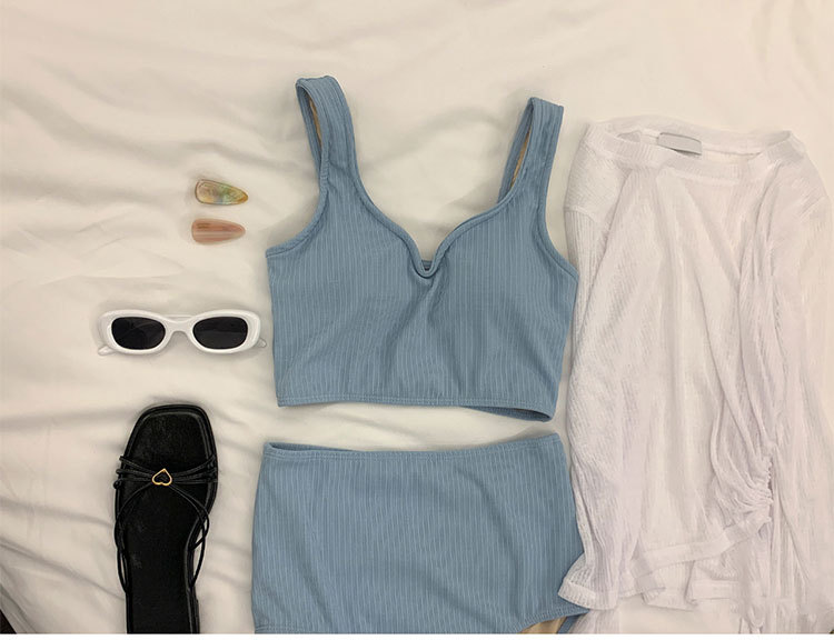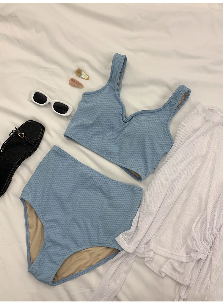새로운 스타일 스파이스 걸스 V 넥 카미솔 솔리드 컬러 스플릿 수영복 여성 한국 스타일 간단한 레트로 하이 허리 비키니 수영복스토어 가기