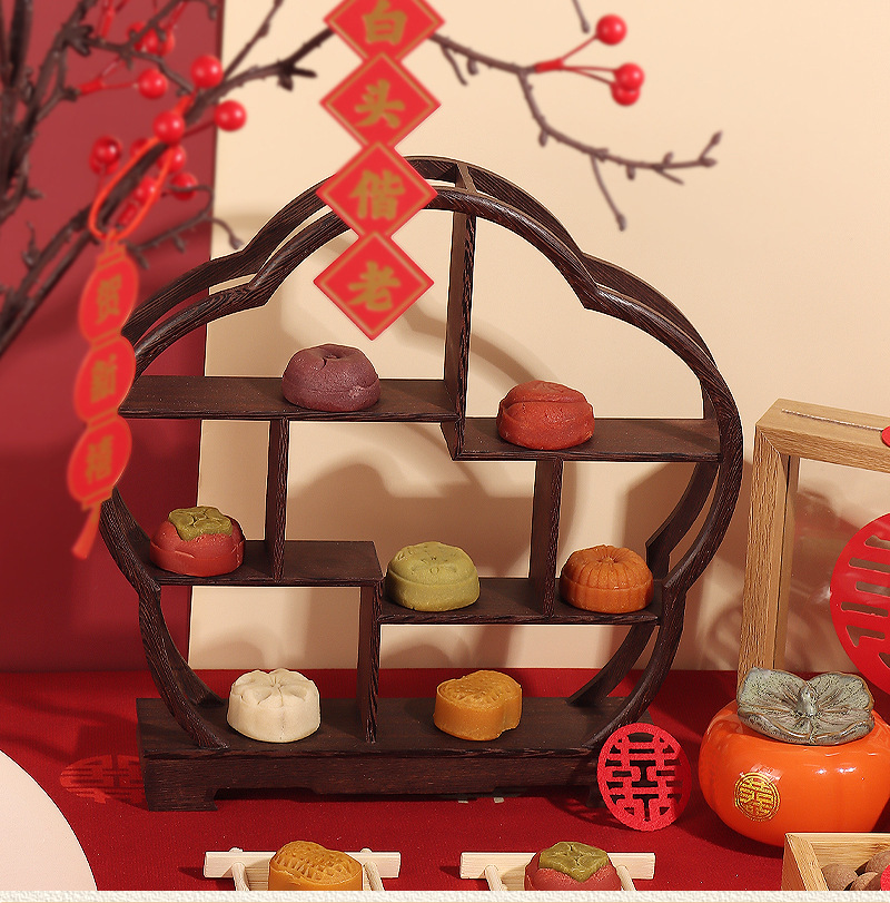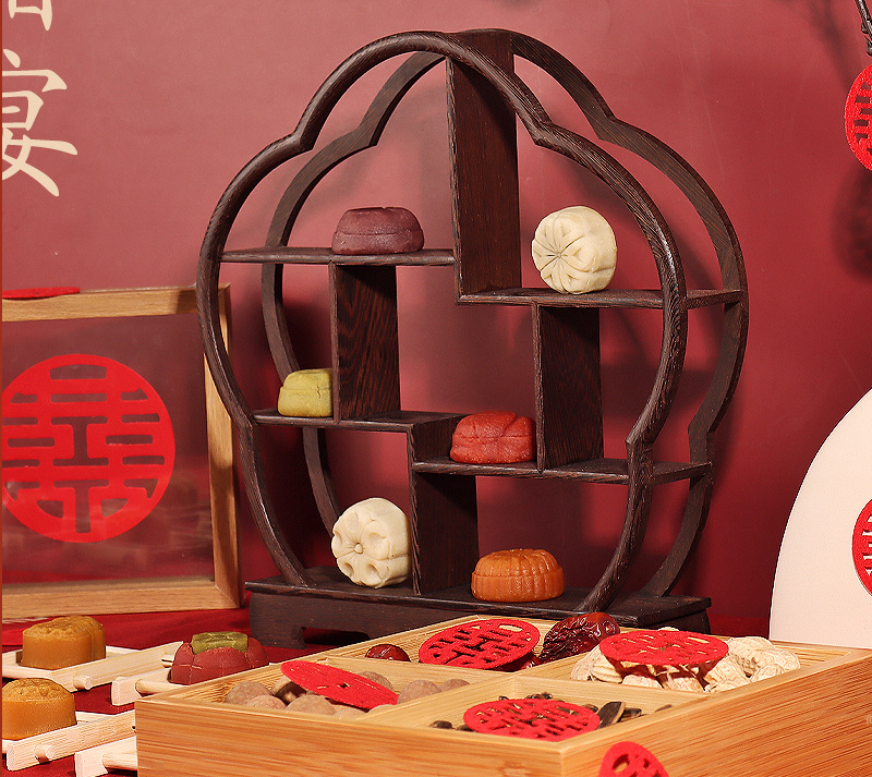 중국 스타일의 약혼 준비 디저트 테이블 장식품 꽃 모양의 고대 랙 선반 테이블 장식품 딤섬 페이스트리 디저트 디스플레이 랙