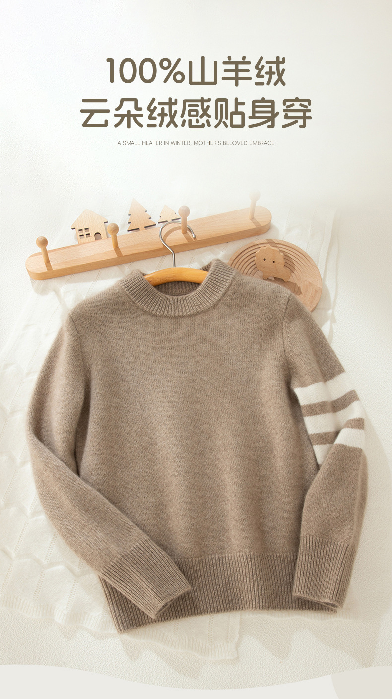 어린이 100 순수 산 캐시미어 스웨터 두꺼운 소년 3 바 풀오버 스웨터 걸스 니트 베이스 셔츠 24 겨울 뉴스토어 가기