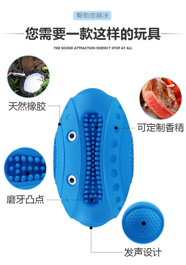 아마존 폭발성 사운드 고무 럭비 맞춤형 개 장난감 볼 하이 퀄리티 물린 방지 Molar 치과 청소스토어 가기
