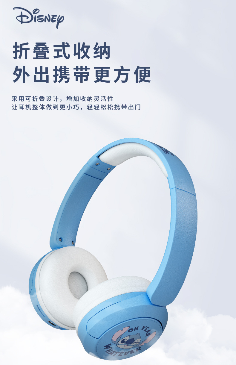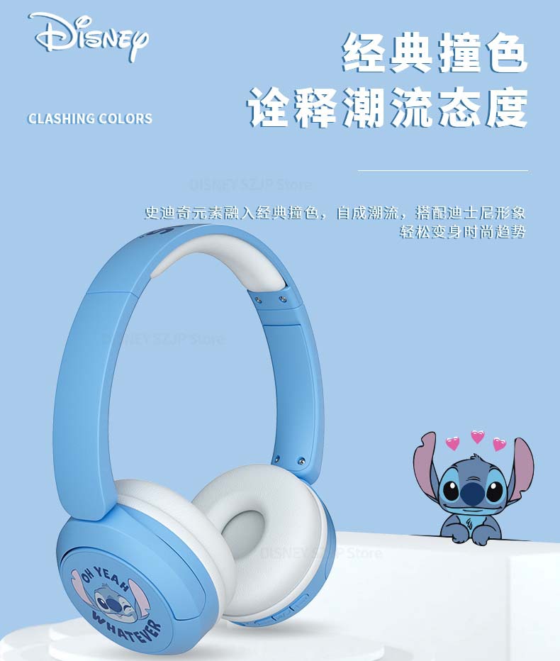 새로운 국경 간 디즈니 귀여운 만화 스티치 머리 장착형 블루투스 귀여운 스타일 스테레오 헤드폰스토어 가기
