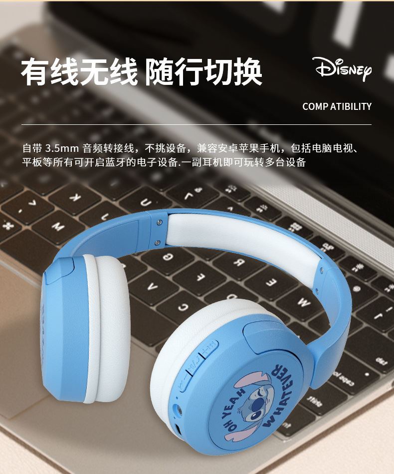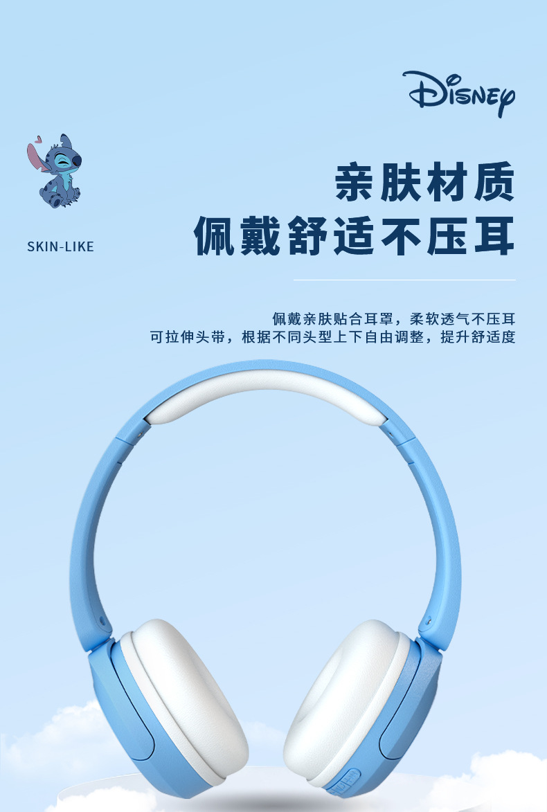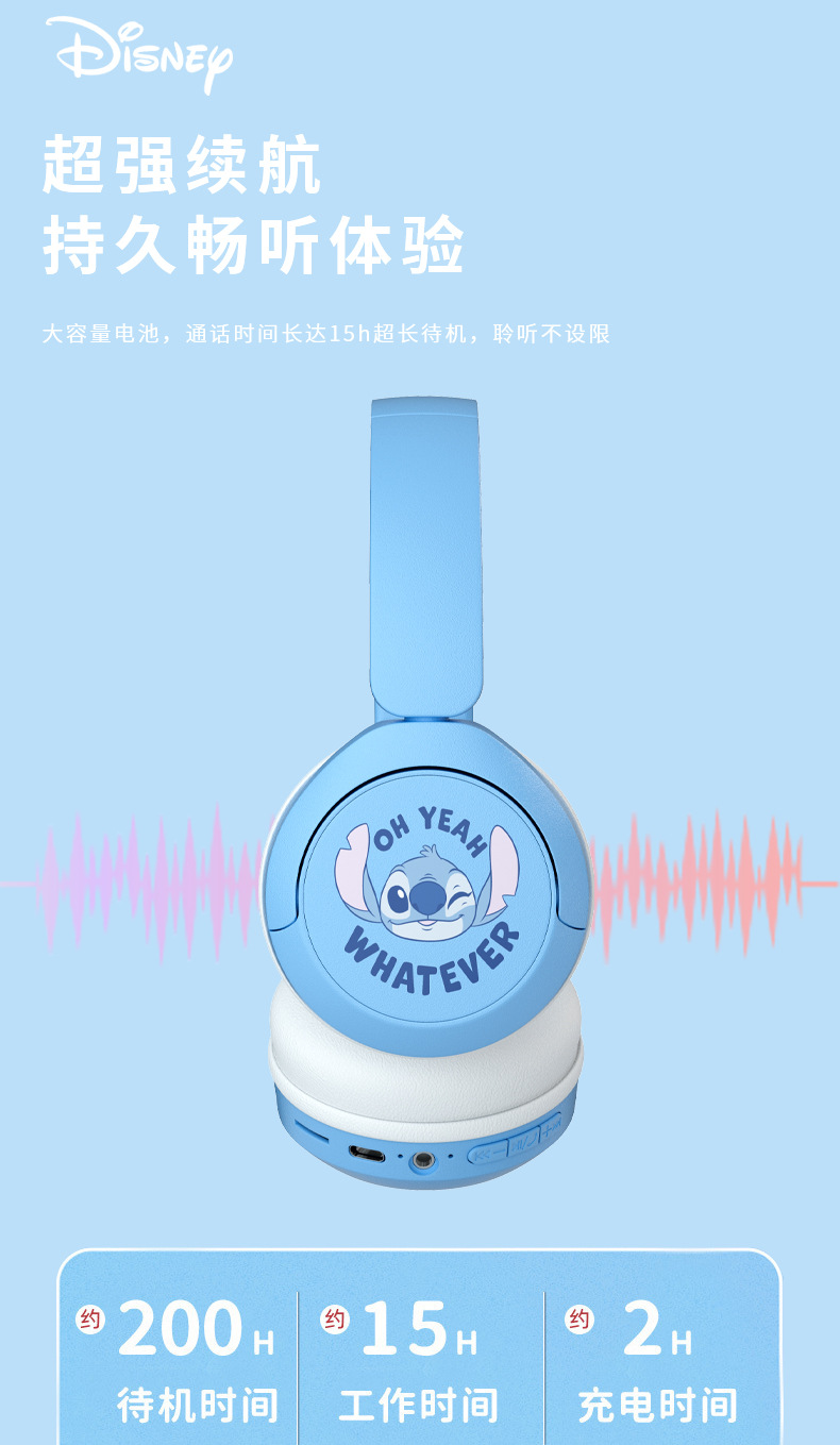 새로운 국경 간 디즈니 귀여운 만화 스티치 머리 장착형 블루투스 귀여운 스타일 스테레오 헤드폰