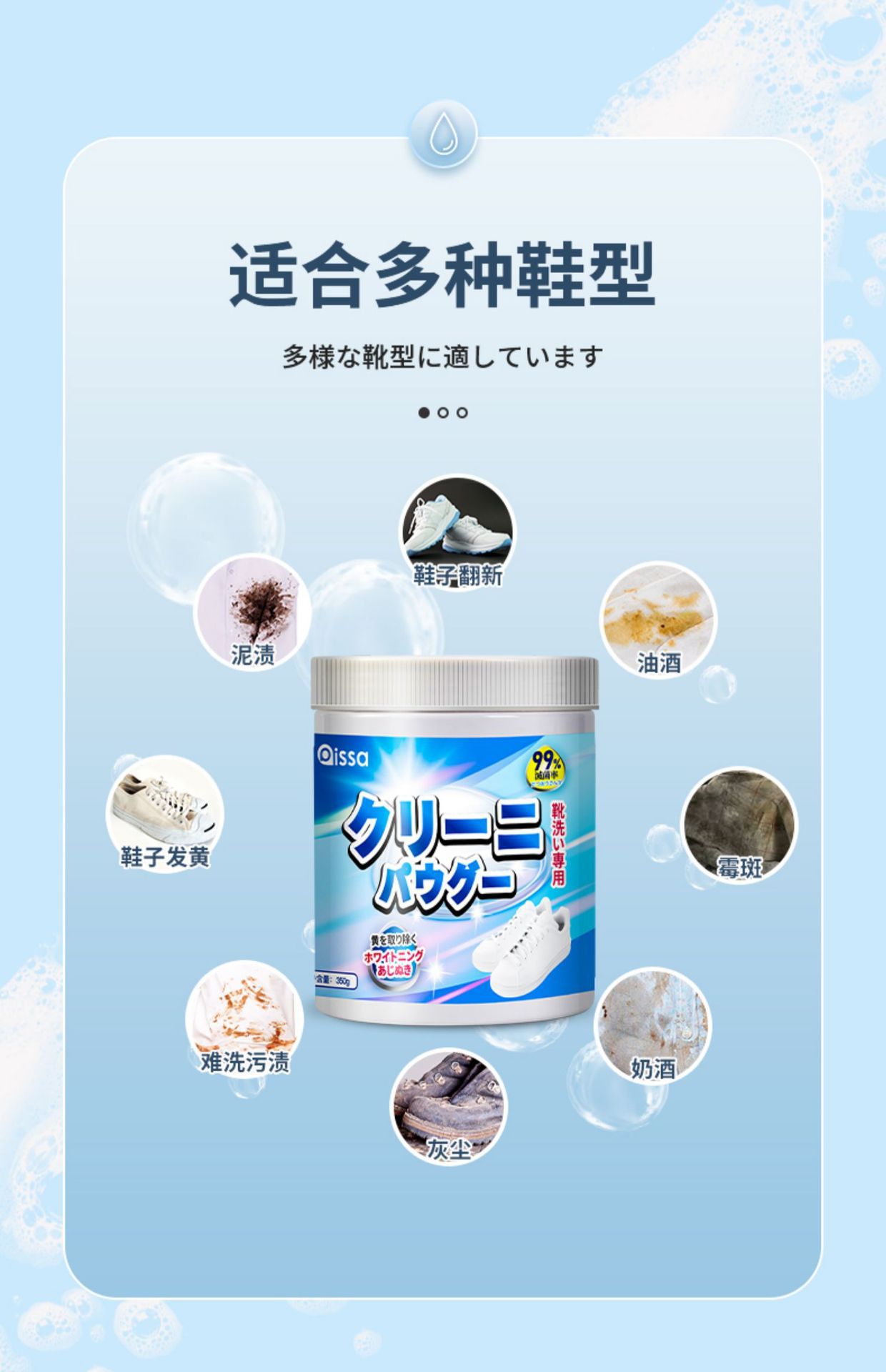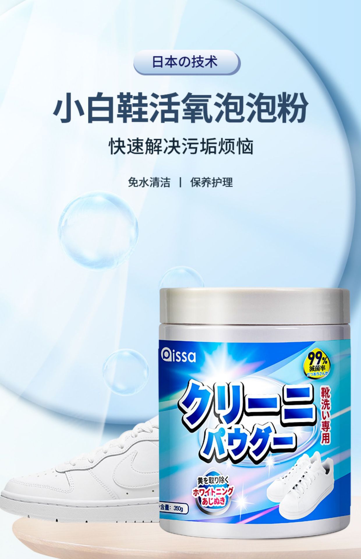 • 신발세탁용 생태산소버블파우더·1병 [청소도구+신발닦이 포함]