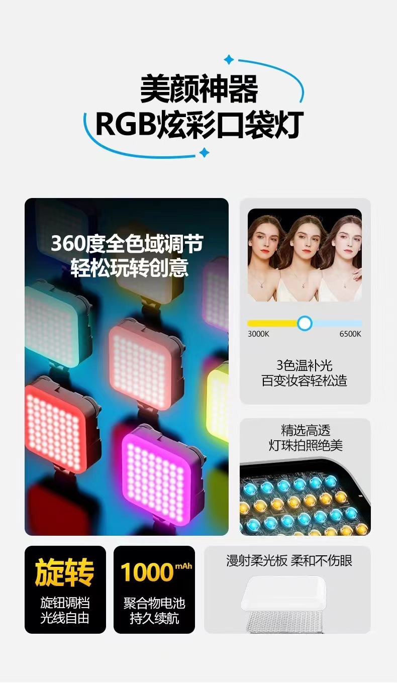 D10 A160 포켓 램프 LED 비디오 램프 라이브 셀카 브래킷 휴대 전화 카메라 RGB 휴대 전화 채우기 조명