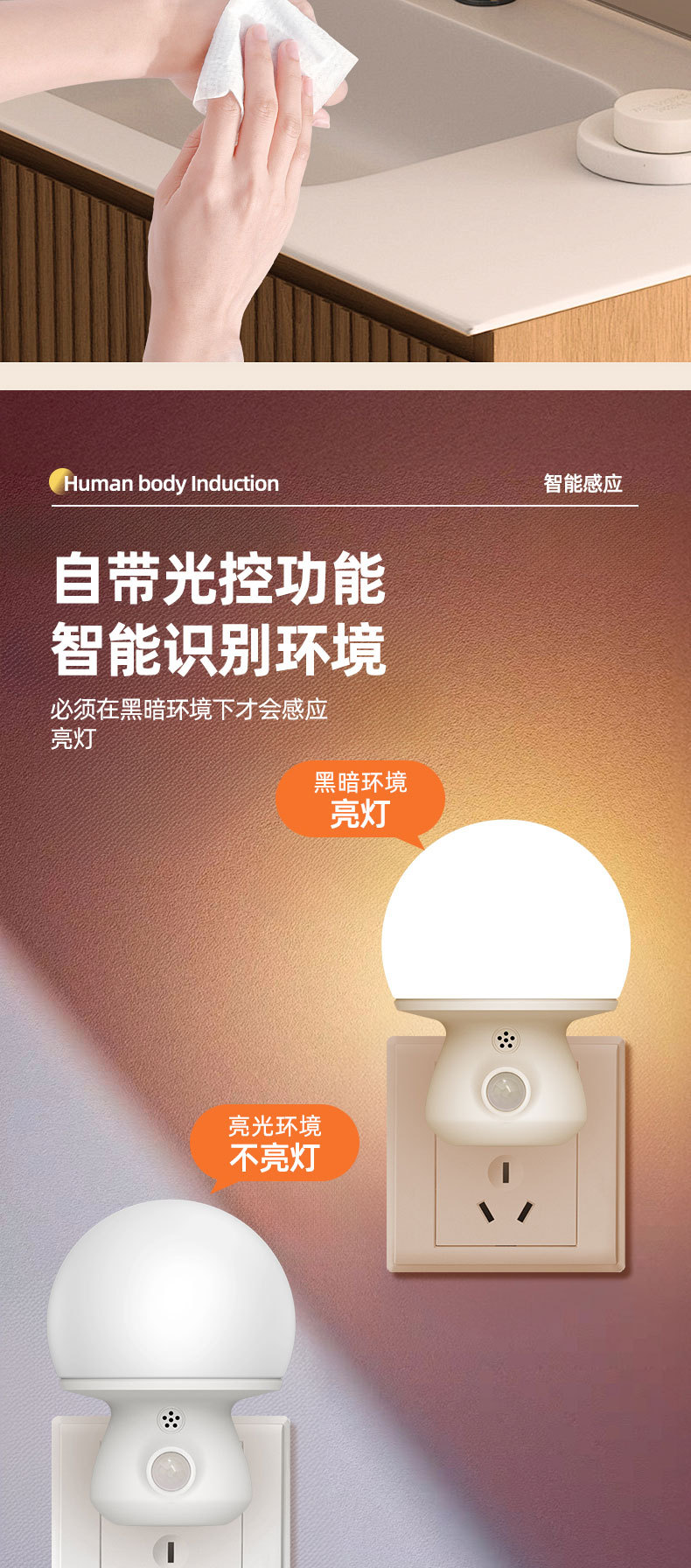 코리아 지능형 led 플러그인 인체 유도 야간 조명 통로 야간 조명 사람들이 가벼운 계단 복도에 온다