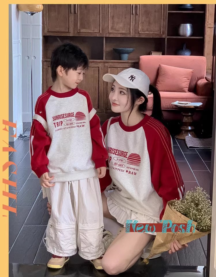 2024 년 새로운 어머니와 딸 봄과 가을 조끼는 서로 다른 부모-자식 복장 세 명의 어머니와 아들 튀김 거리 한국어 버전