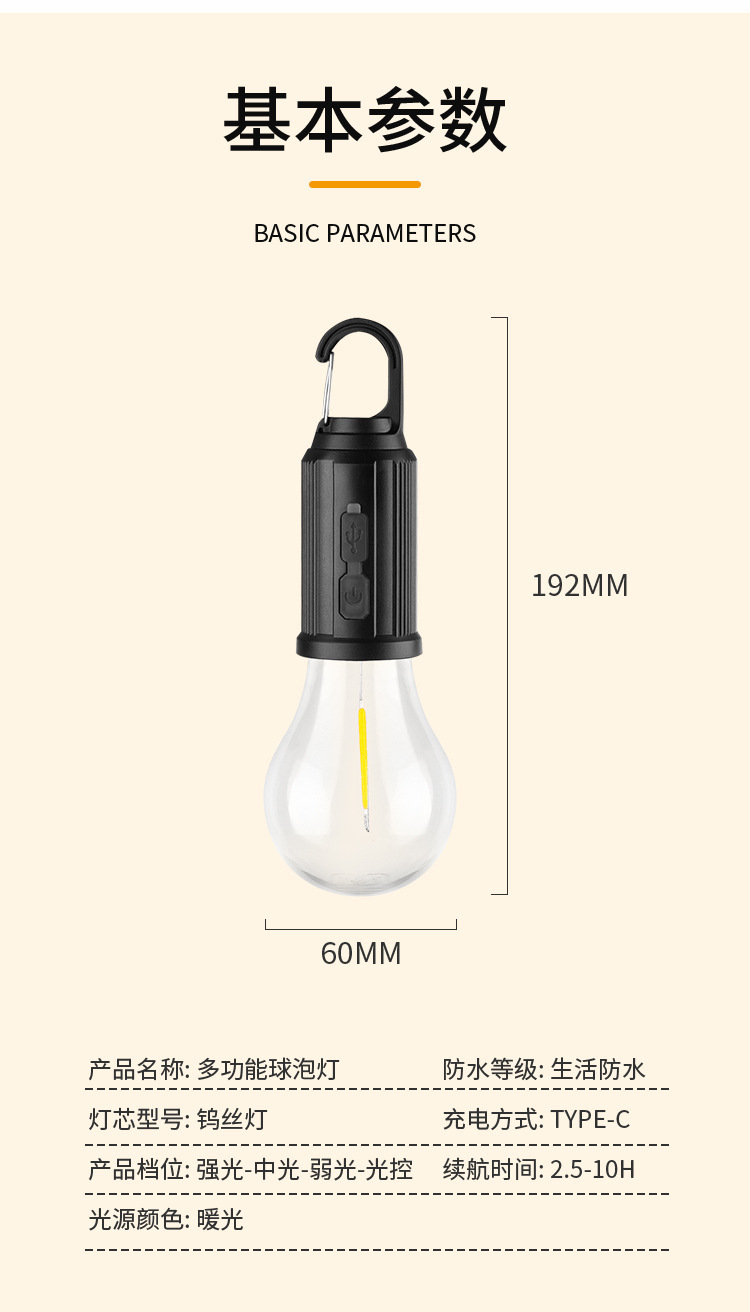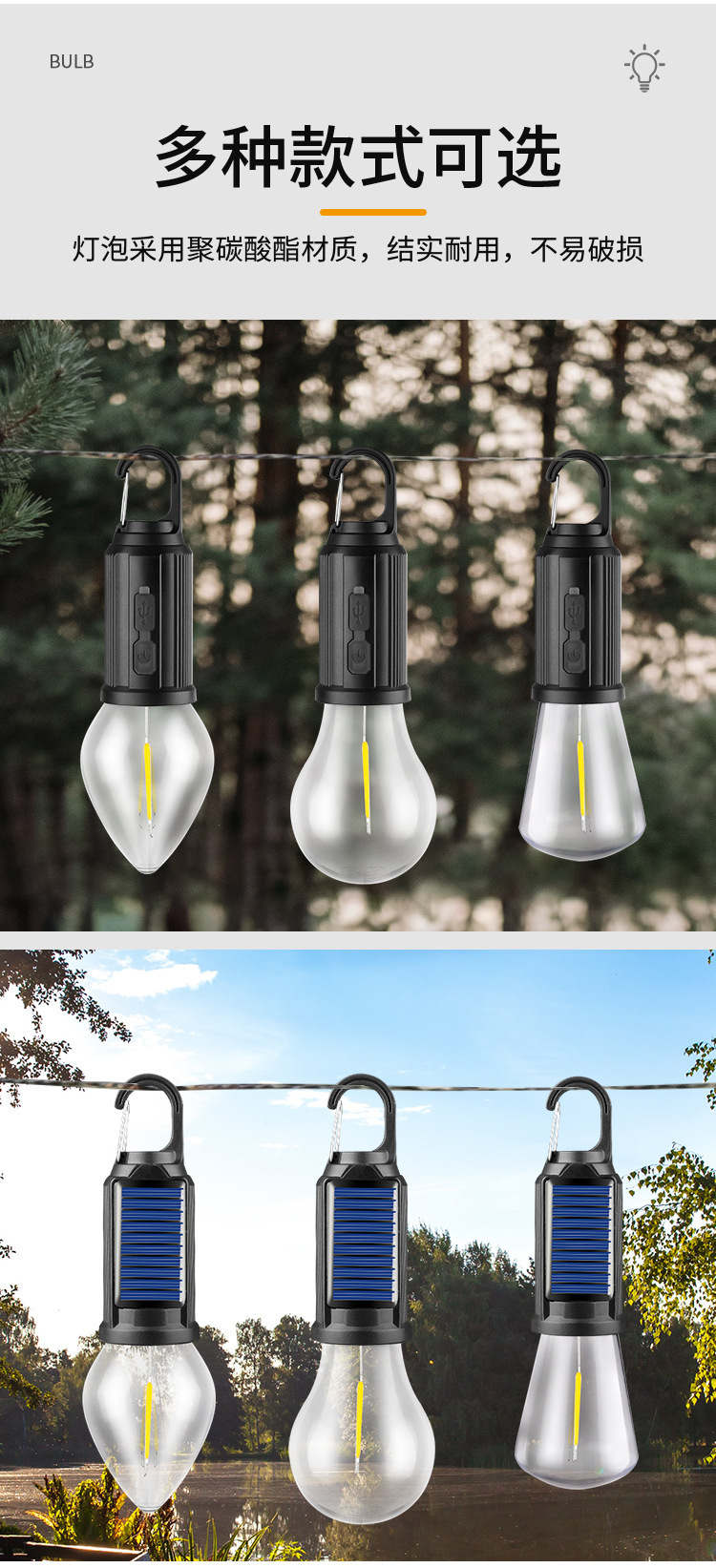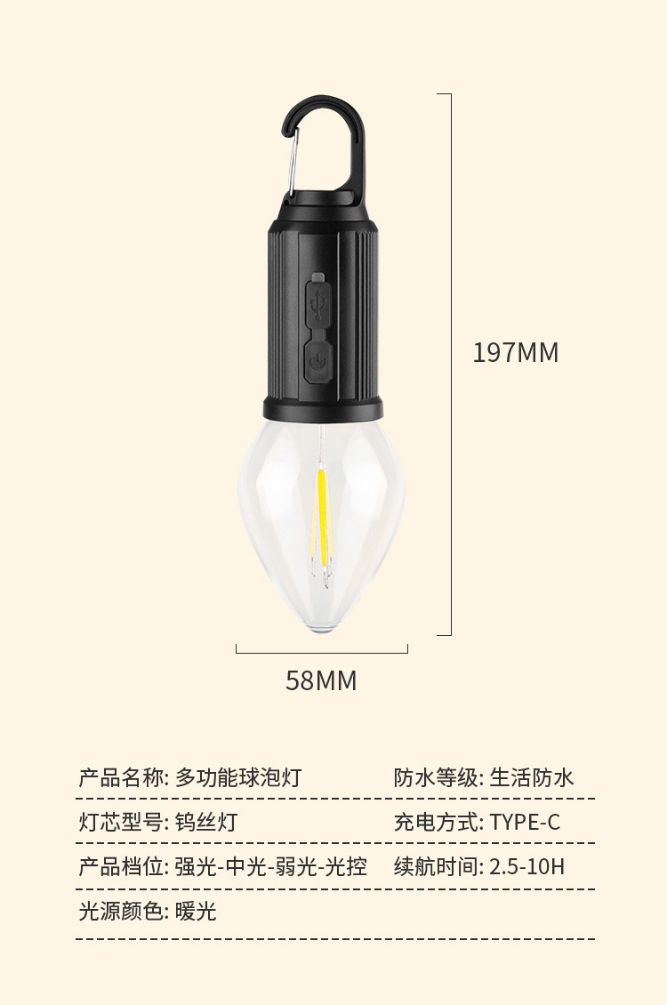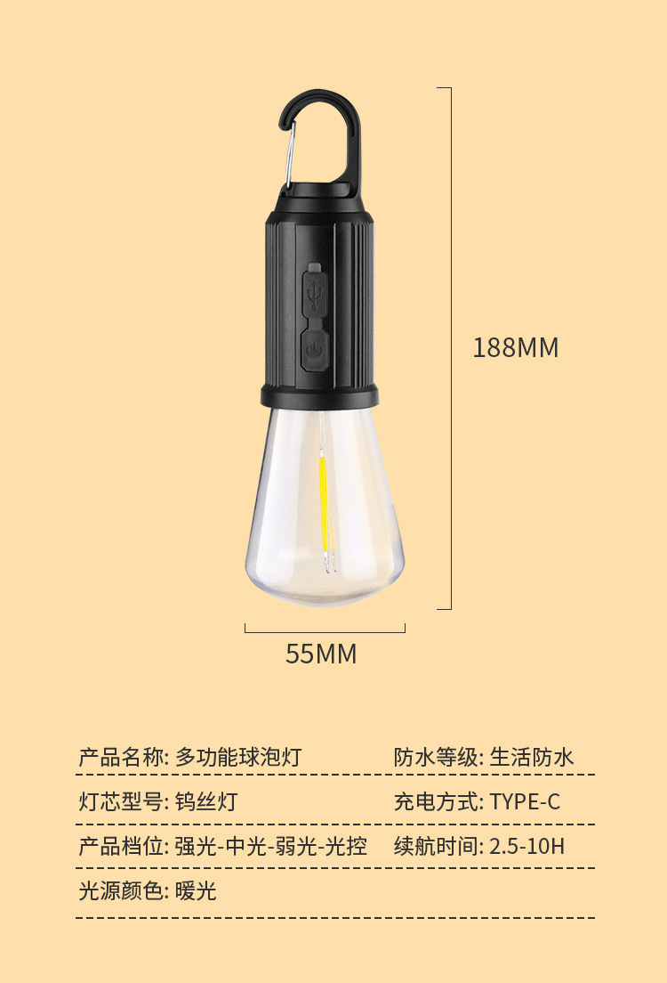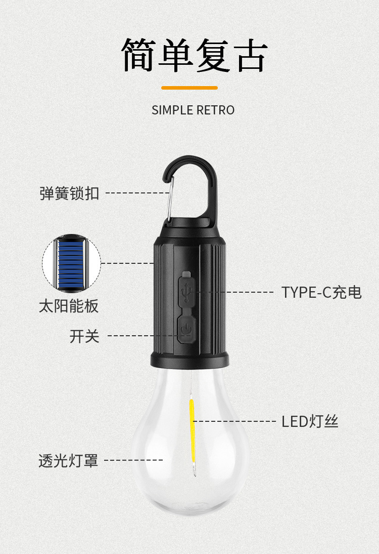 2024 새로운 국경 간 태양 캠핑 램프 충전식 비상 전구 램프 LED 텅스텐 텐트 램프 복고풍 캠핑 램프
