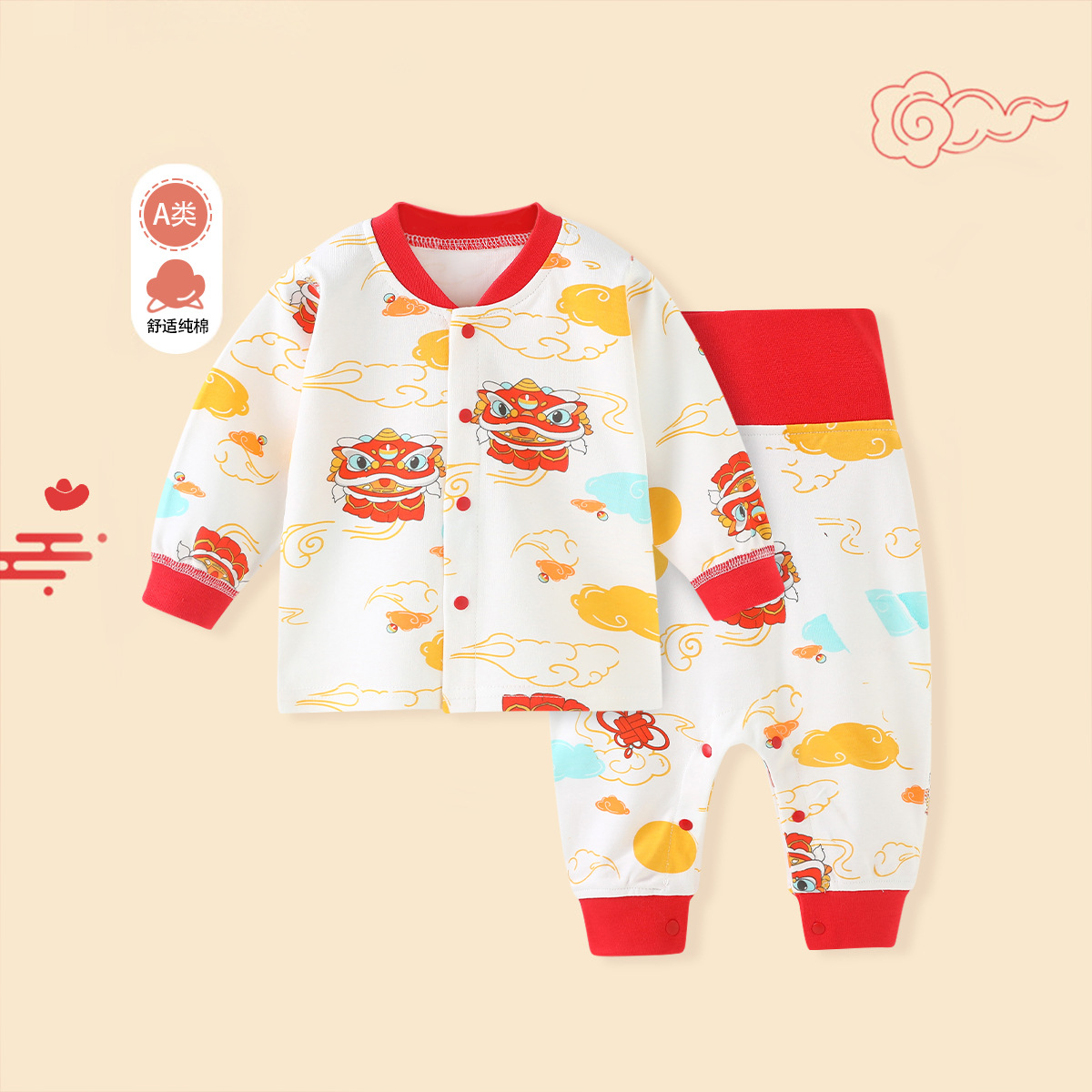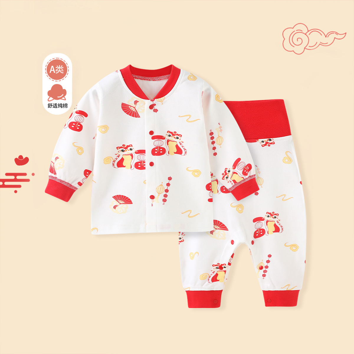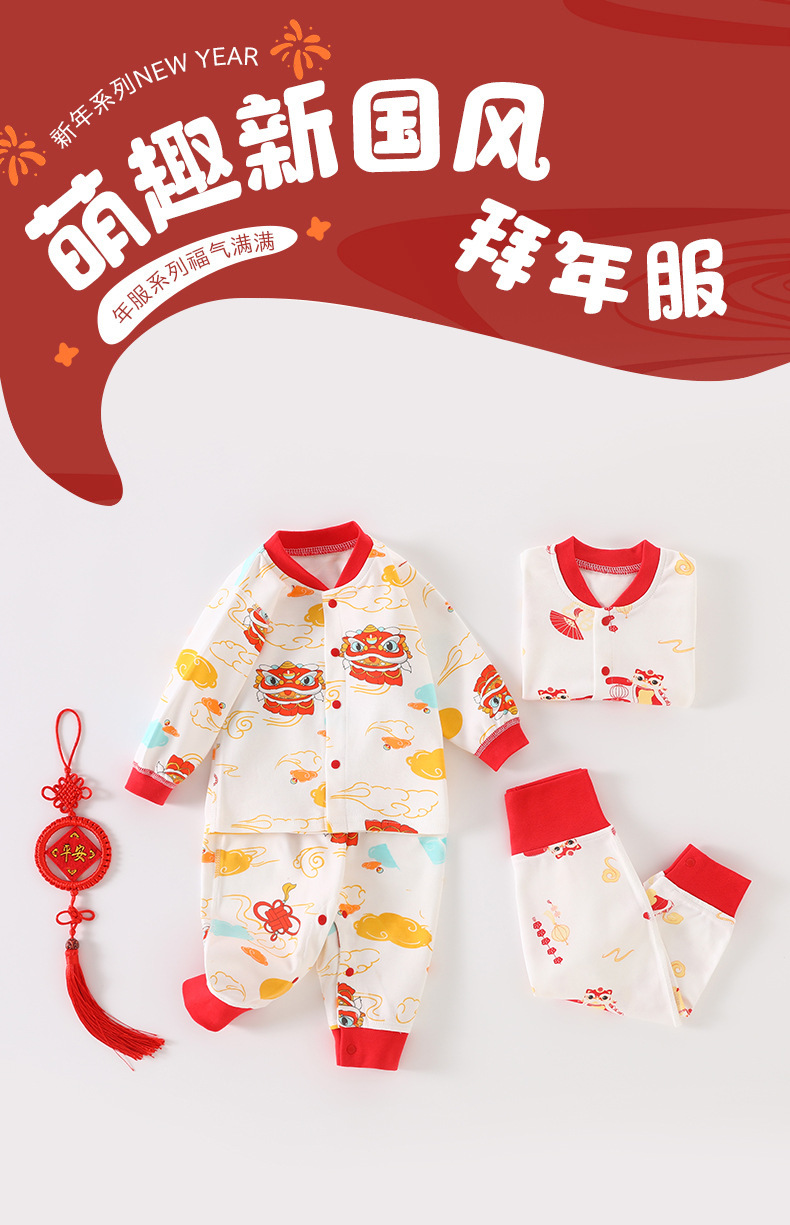 아기의 가을 옷과 바지 면화 높은 허리 아기 속옷 세트 배꼽 보호 기지 어린이 축제 따뜻한 가정 잠옷스토어 가기