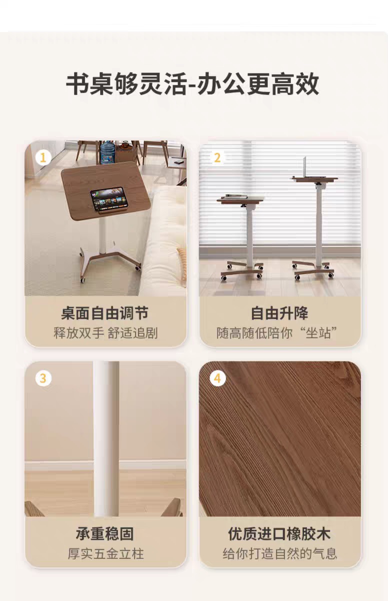 단단한 나무 리프팅 책상 움직일 수 있는 컴퓨터 책상 작은 아파트 사무실 책상 가정 연구 테이블 접이식 바퀴스토어 가기