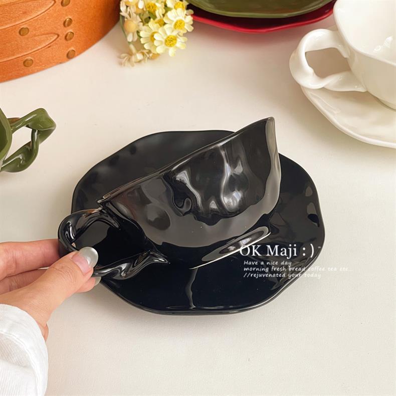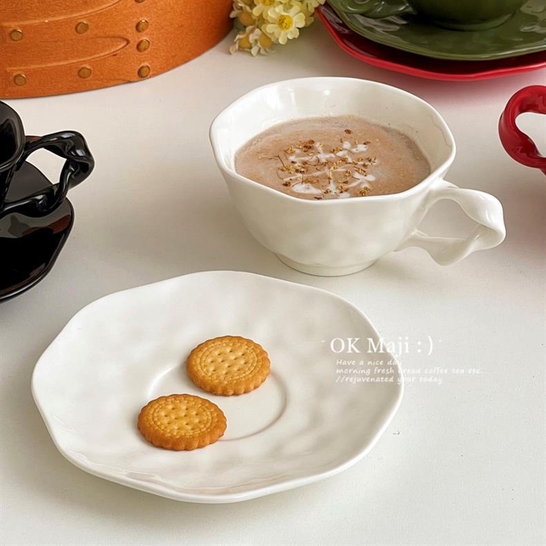 창조적 인 절묘한 커피 컵 고급 감각 빛 오후의 차 식기 세라믹 컵 머그잔 커피 컵 소스 세트
