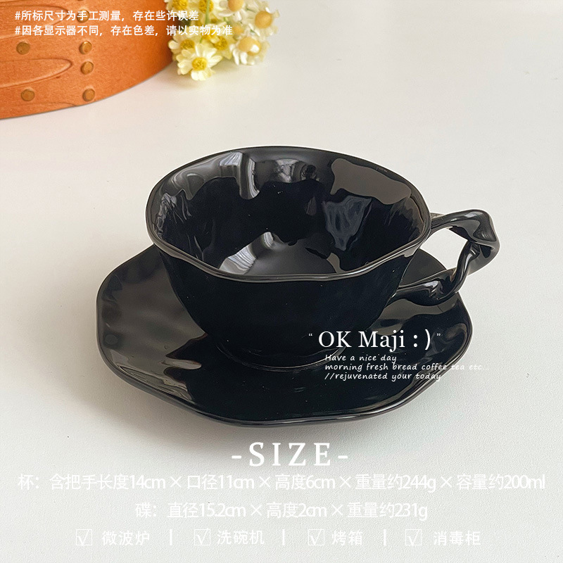 • 불규칙한 손으로 꼬집은 커피 컵과 접시 - 블랙