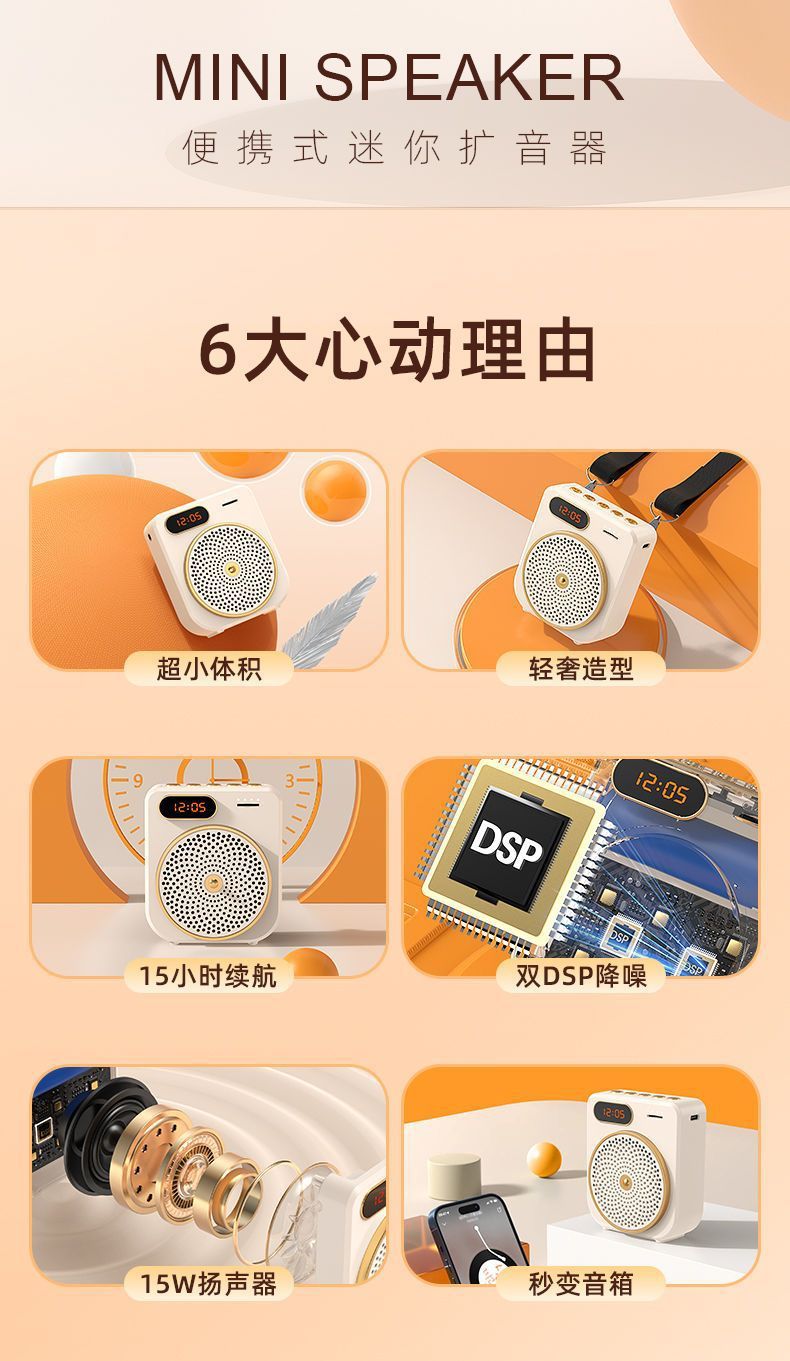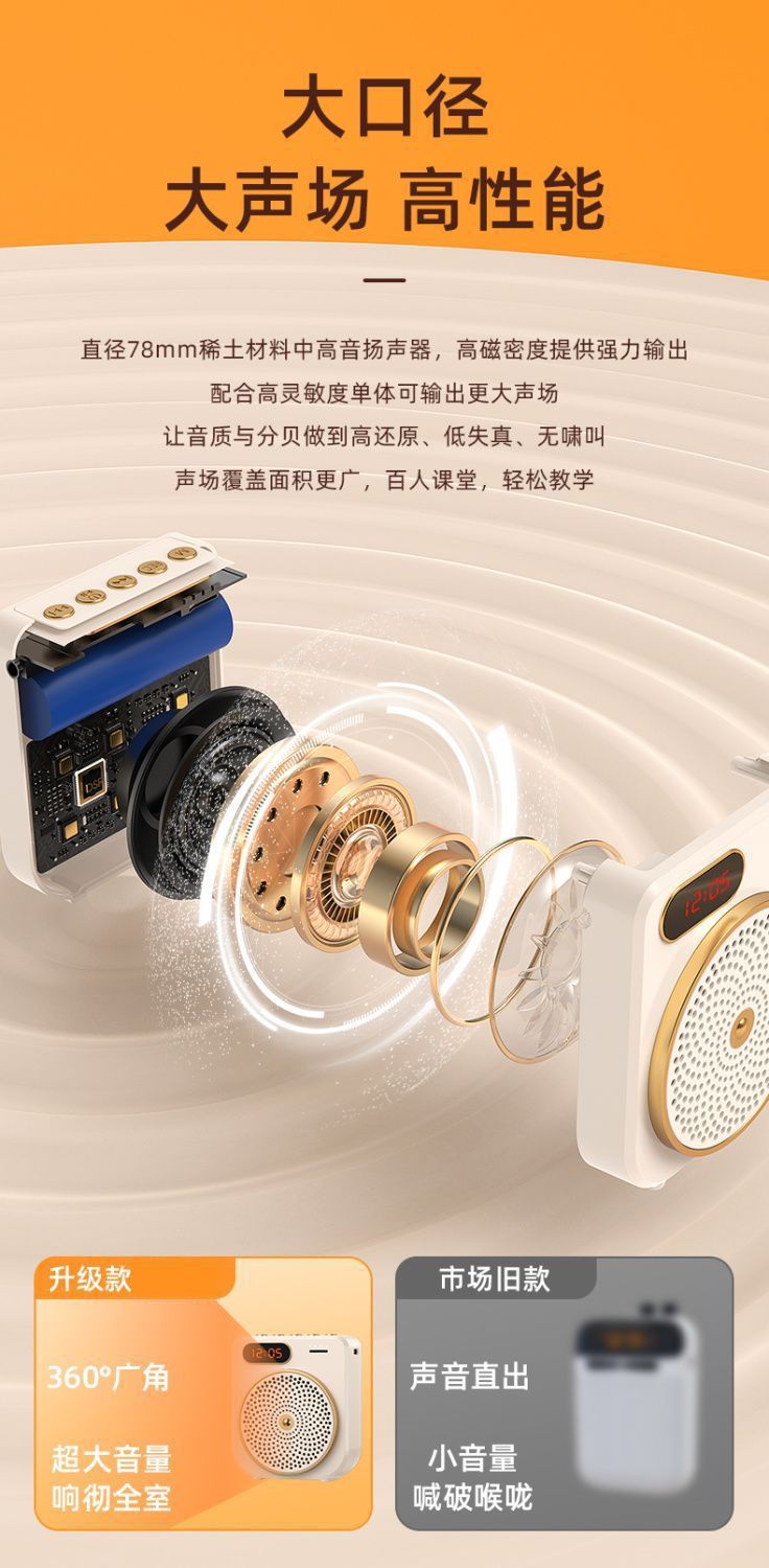 꿀벌 메가폰 교사 허리 장착 플레이어 투어 가이드 강의 대용량 메가폰 스피커