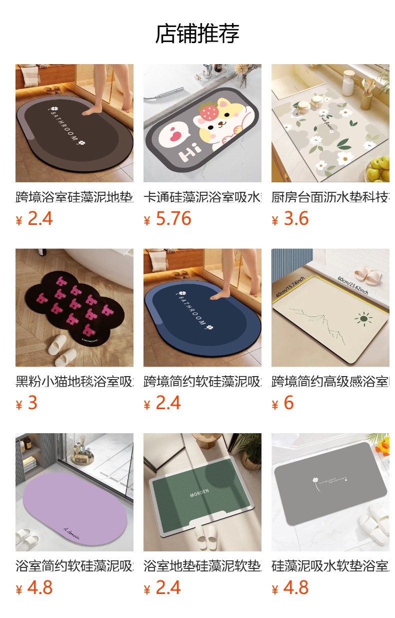 국경을 넘어 인기 있는 규조토 욕실 매트, 미끄럼 방지, 흡수성, 부드러운 매트, 화장실 바닥, 욕실 문, 오염 방지스토어 가기