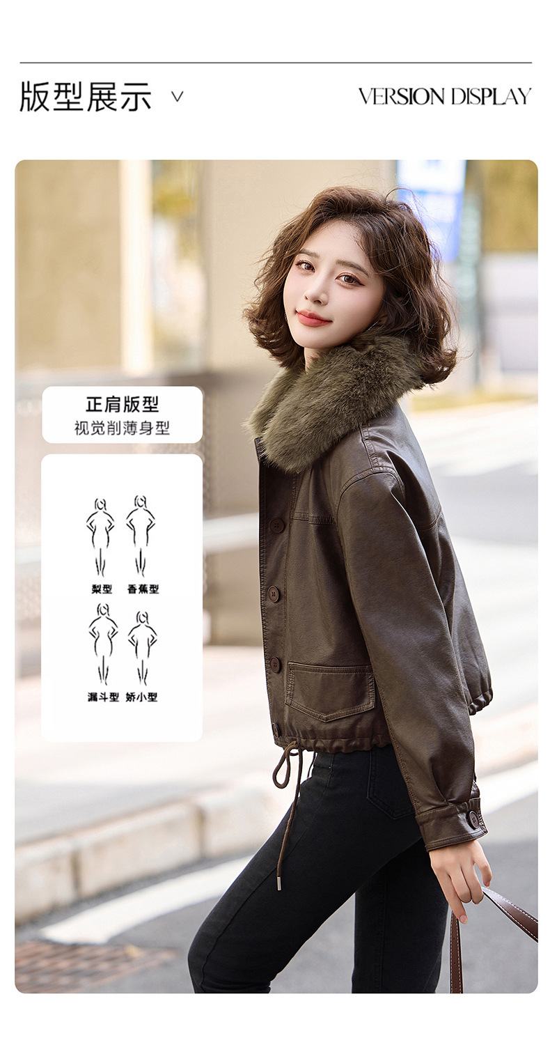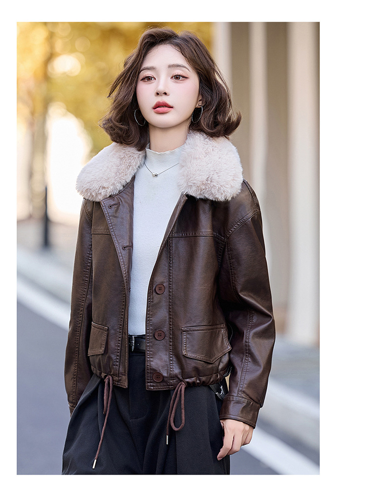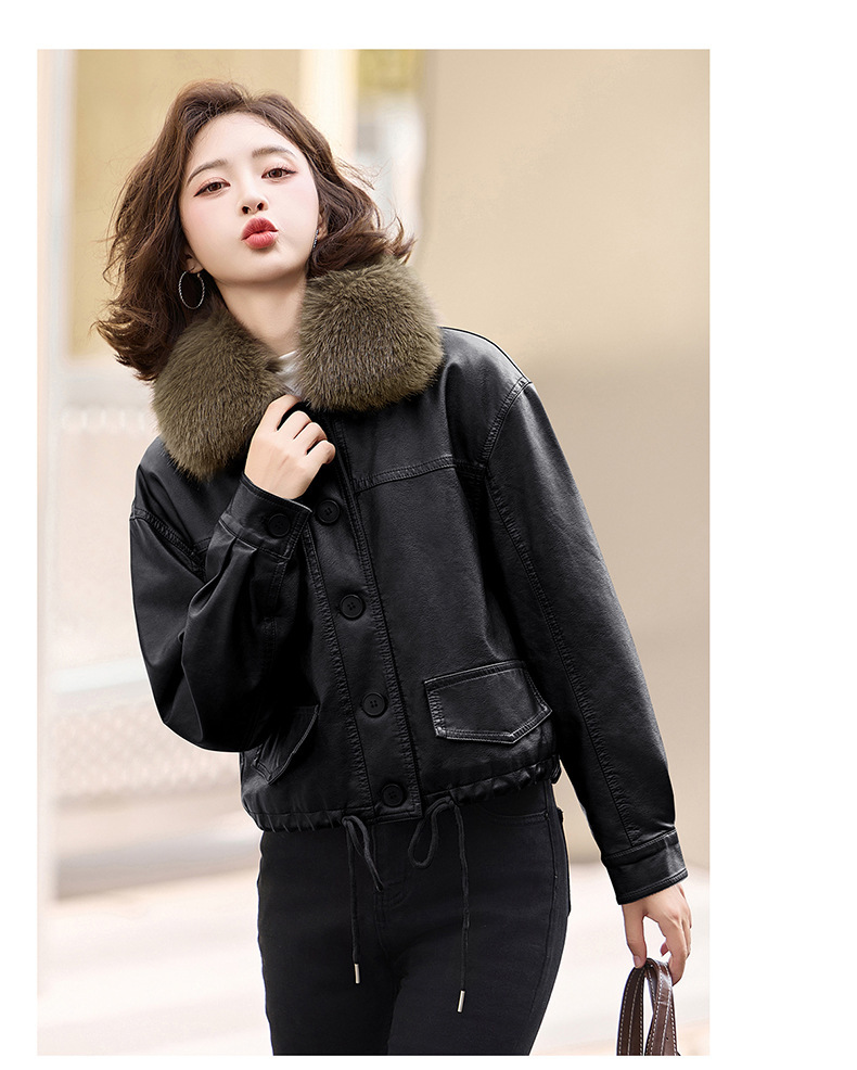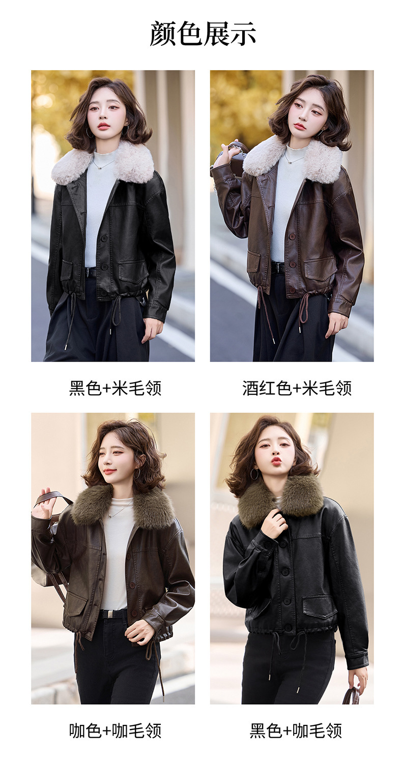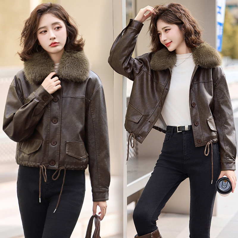 브랜드 기모 두꺼운 가죽 자켓 여성의 짧은 2024 새로운 겨울 작은 캐주얼 모피 칼라 오토바이 재킷스토어 가기