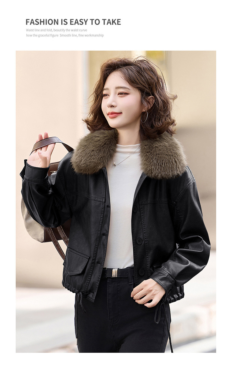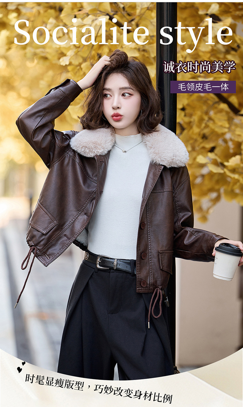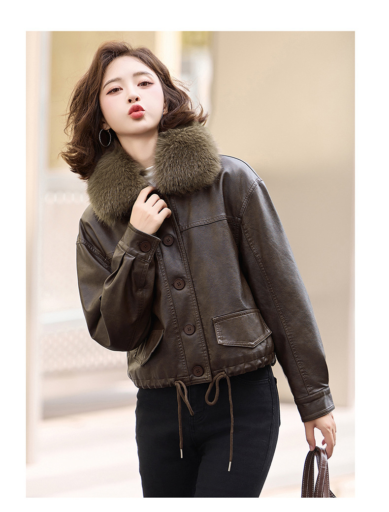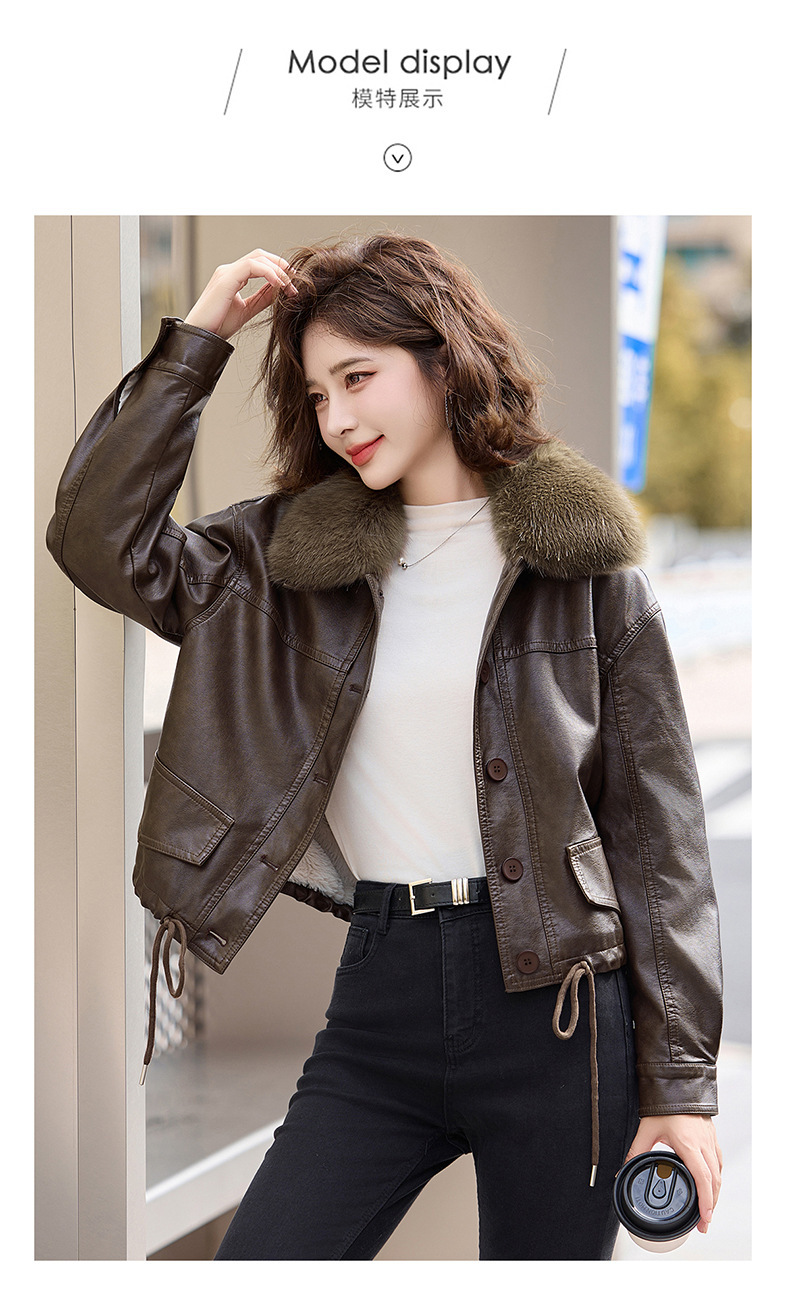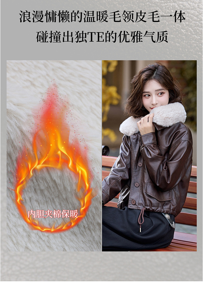 브랜드 기모 두꺼운 가죽 자켓 여성의 짧은 2024 새로운 겨울 작은 캐주얼 모피 칼라 오토바이 재킷스토어 가기