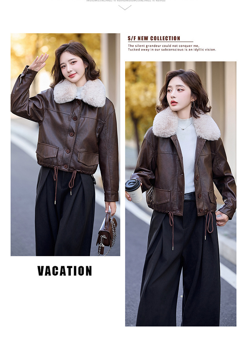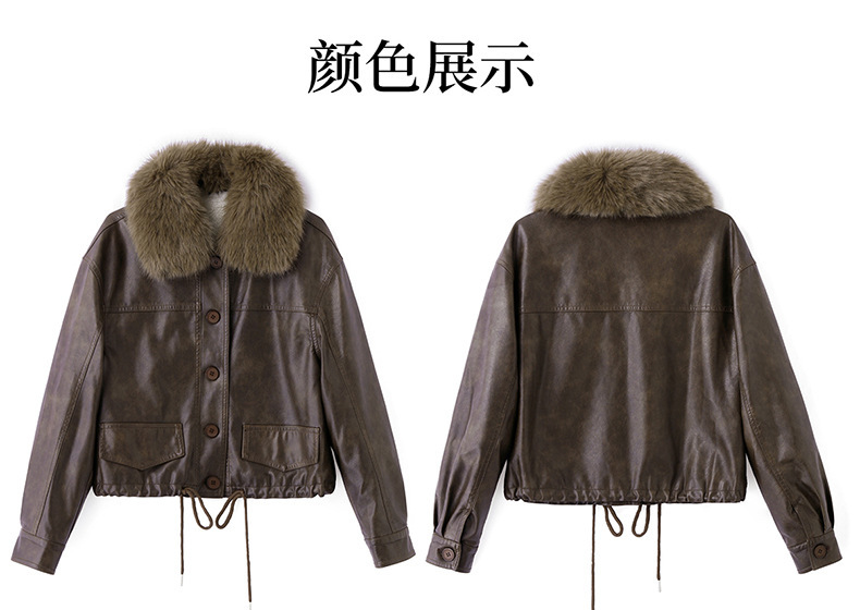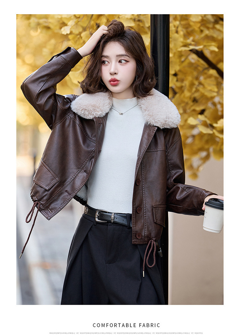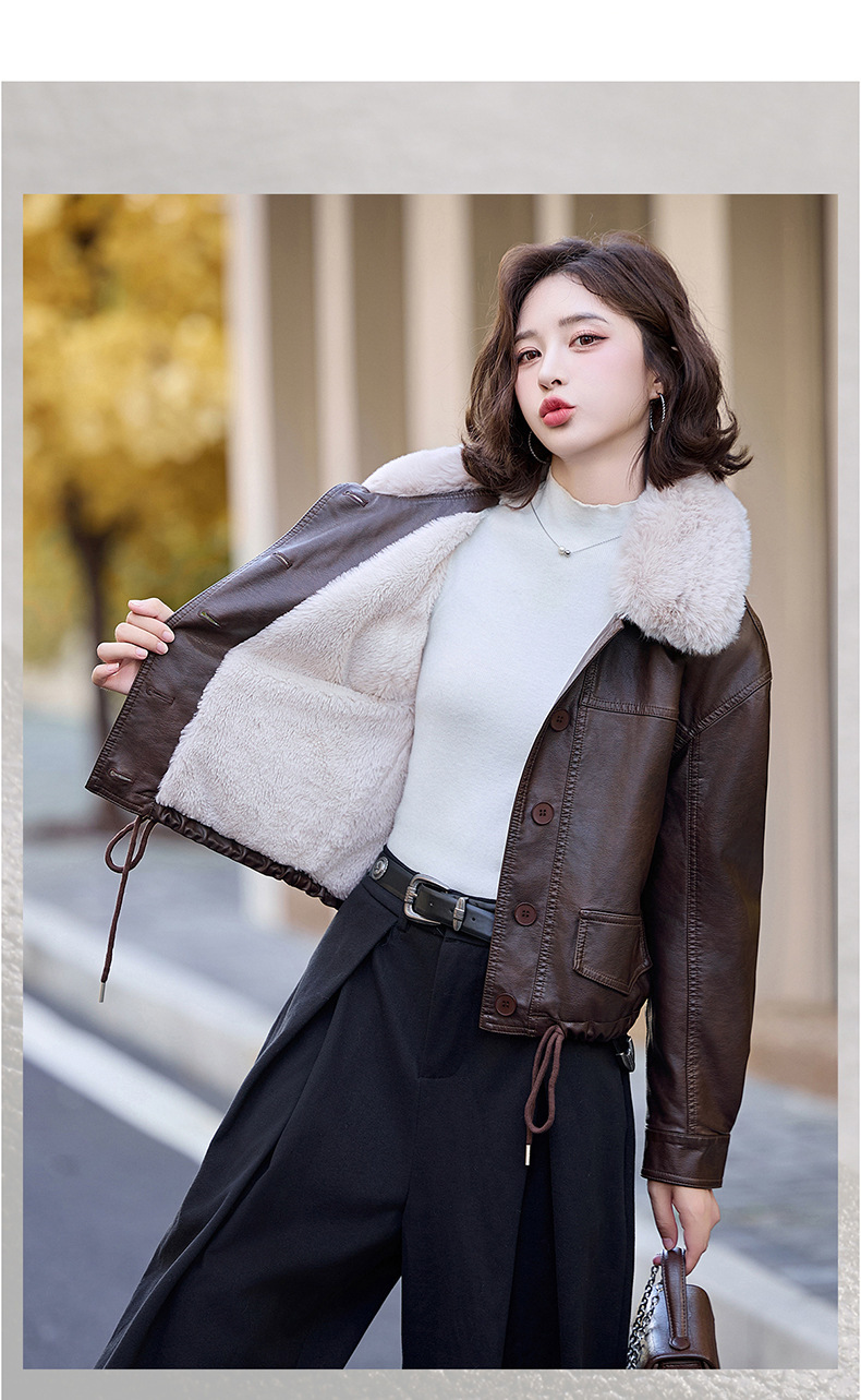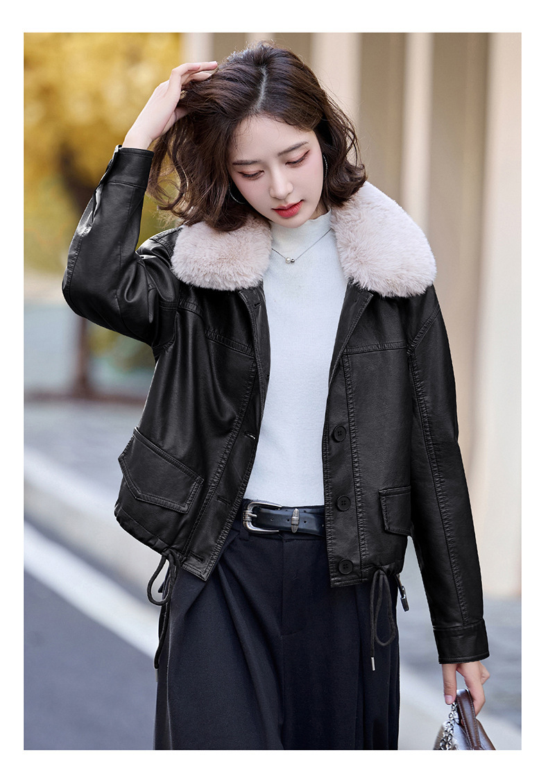 브랜드 기모 두꺼운 가죽 자켓 여성의 짧은 2024 새로운 겨울 작은 캐주얼 모피 칼라 오토바이 재킷스토어 가기