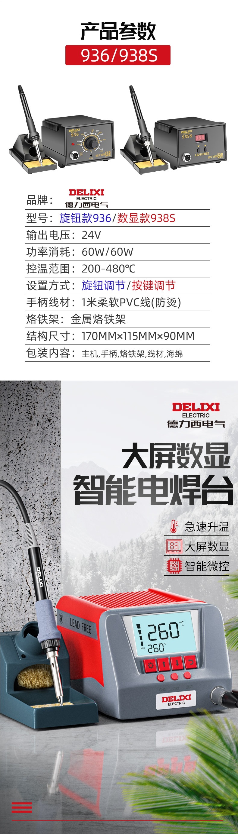 Delixi 936S 전기 납땜 철 온도 조정 가능한 가정용 유지 보수 용접 도구 세트 땜납 총 60W 일정한 온도 용접 스테이션스토어 가기