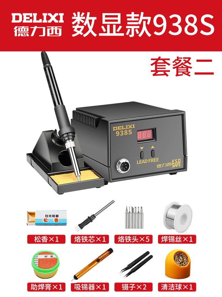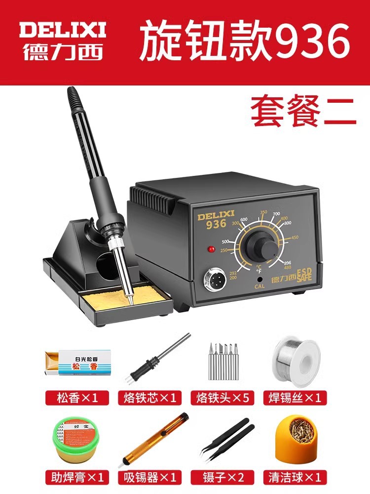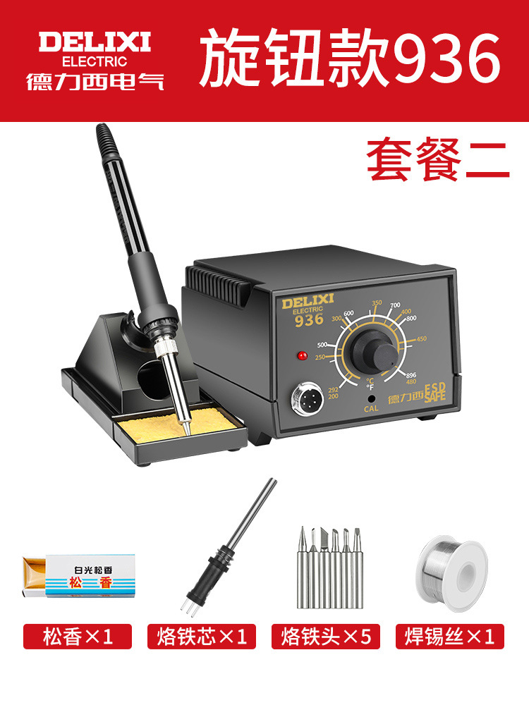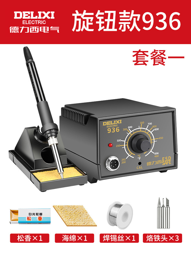 Delixi 936S 전기 납땜 철 온도 조정 가능한 가정용 유지 보수 용접 도구 세트 땜납 총 60W 일정한 온도 용접 스테이션