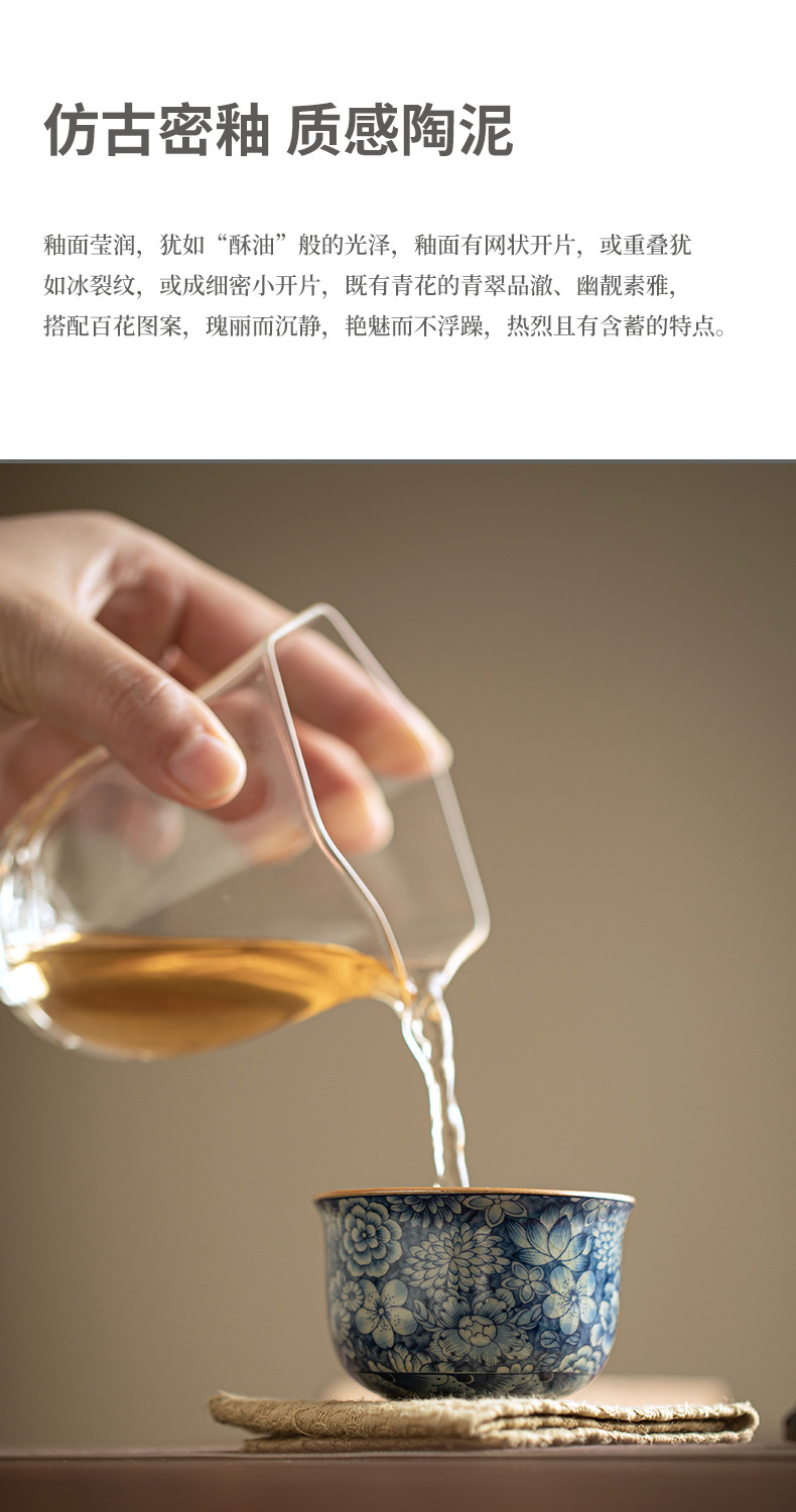 오래된 도자기 진흙 파란색과 흰색 백만 꽃 차 컵 세라믹 차 세트 마스터 컵 게스트 컵 티 컵 홈 쿵푸 차 세트 오픈스토어 가기
