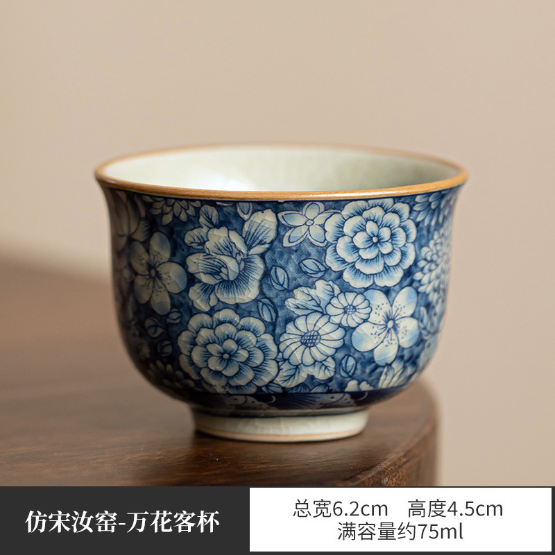 오래된 도자기 진흙 파란색과 흰색 백만 꽃 차 컵 세라믹 차 세트 마스터 컵 게스트 컵 티 컵 홈 쿵푸 차 세트 오픈
