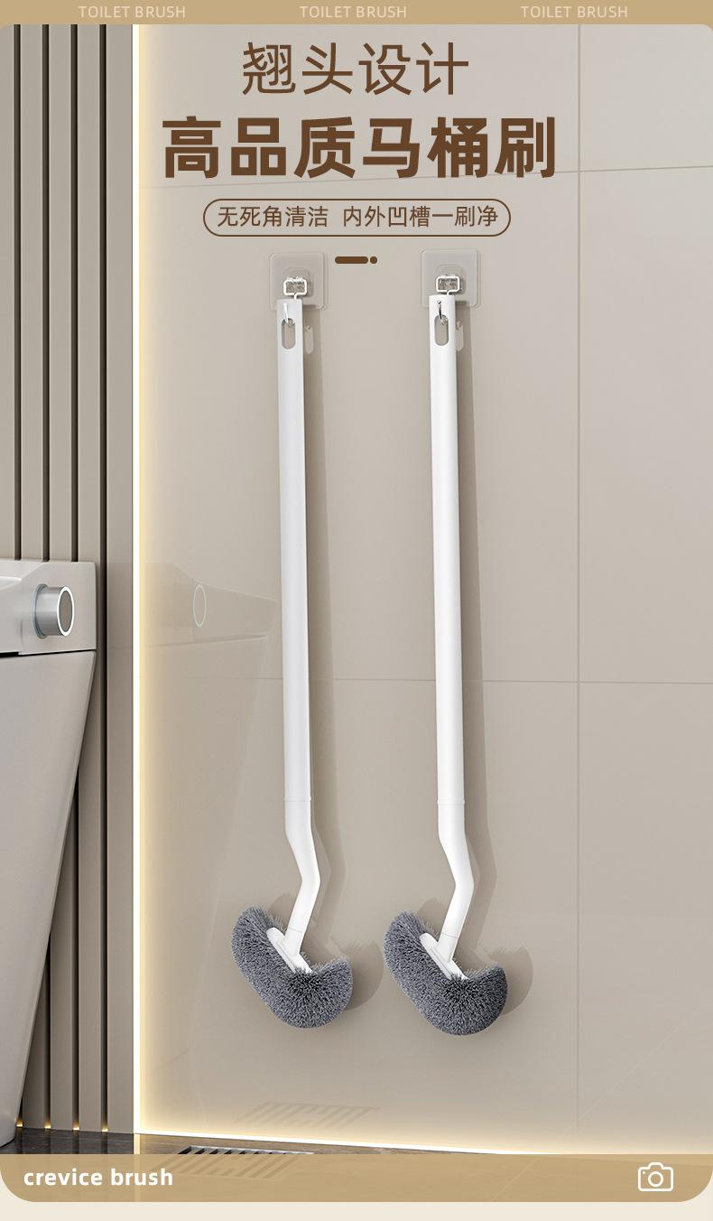 [오리지널 디자인-25년 신제품] 캉미 롱 핸들 S자형 변기 브러쉬 가정용 변기 브러쉬 단단한 청소 브러쉬
