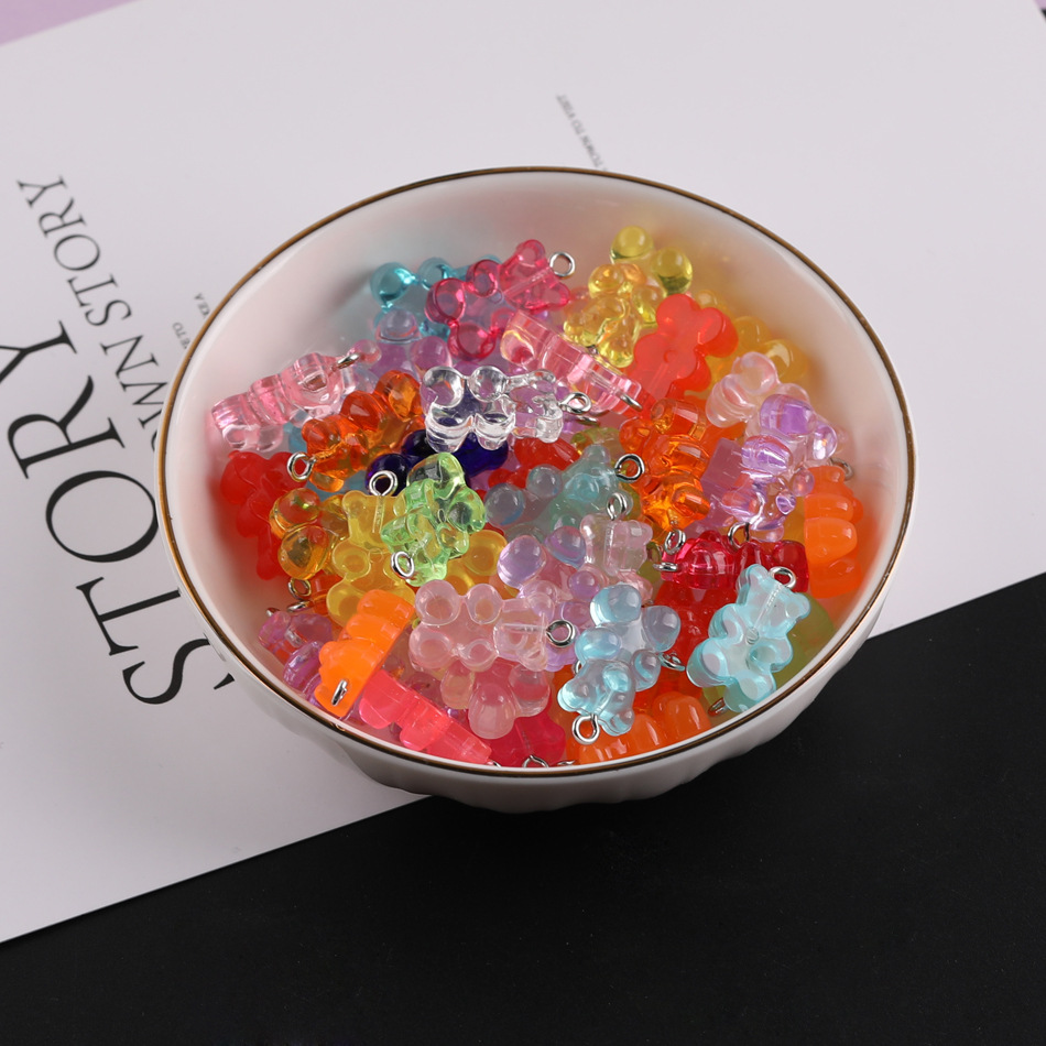 다채로운 투명 미니 베어 아크릴 DIY 수제 팔찌 작은 펜던트 쥬얼리 소재 액세서리