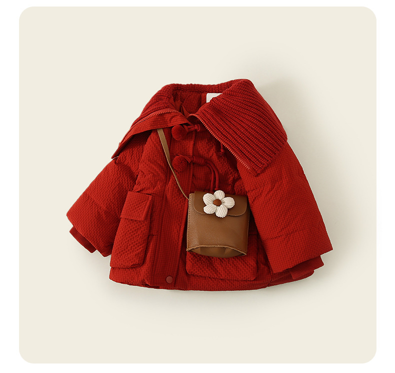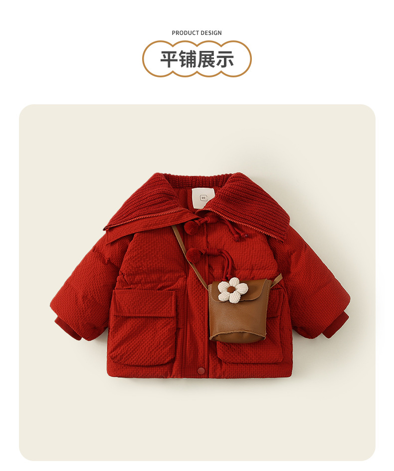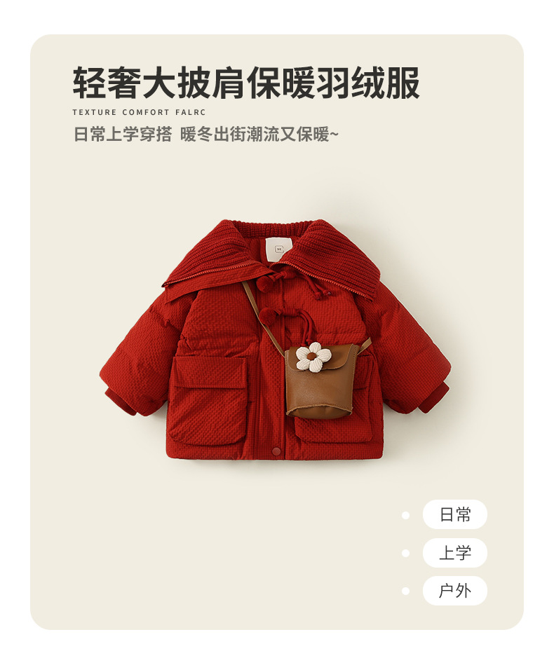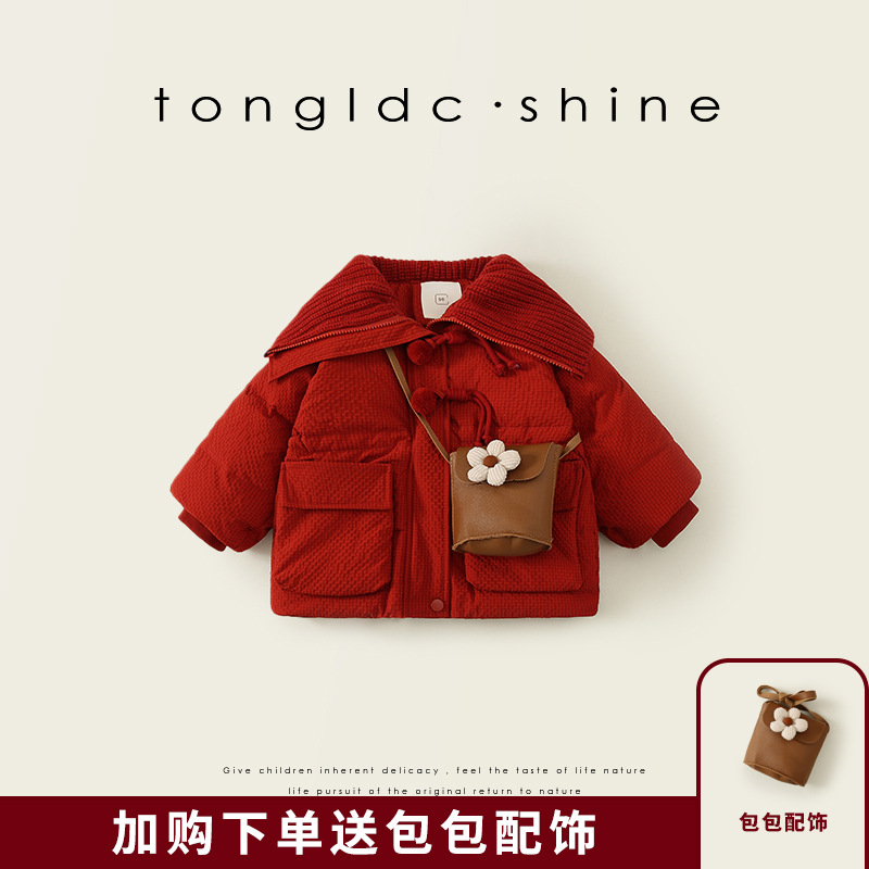 여자 다운 재킷 겨울 2024 새로운 빨간 아기 두꺼운 흰 오리 아래로 아이들의 겨울 서양식 새해 코트스토어 가기