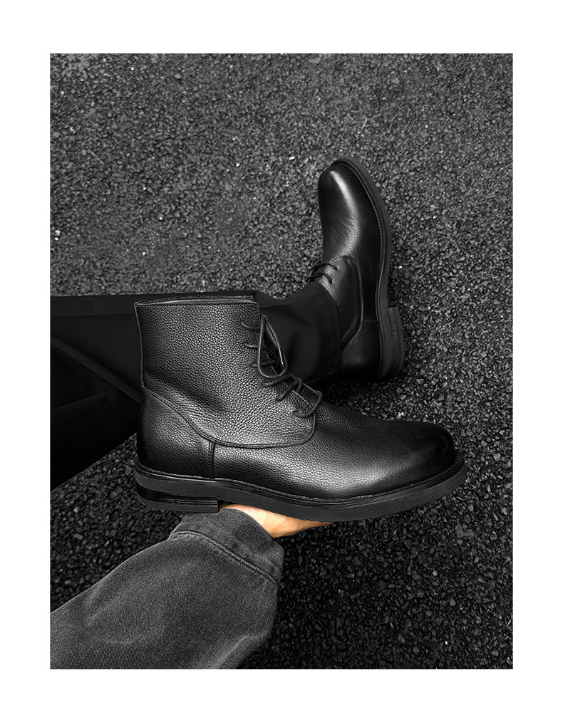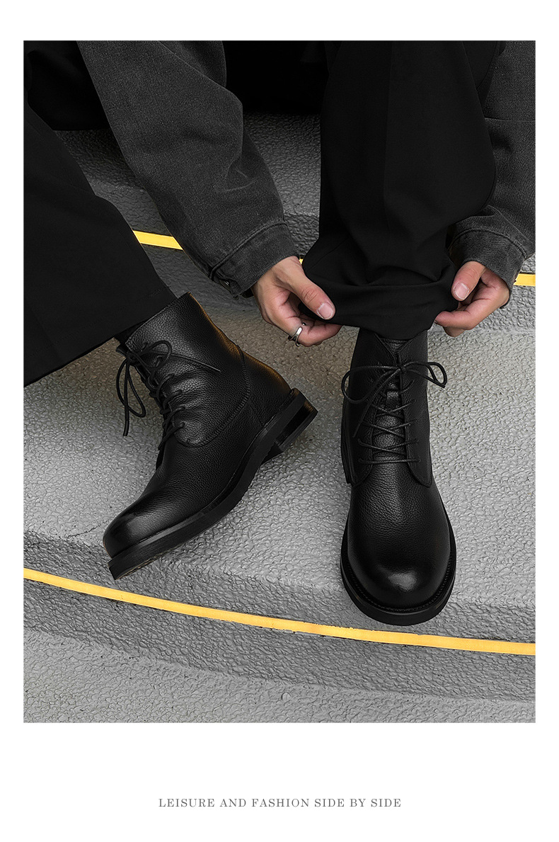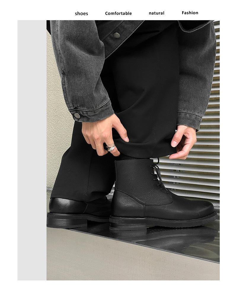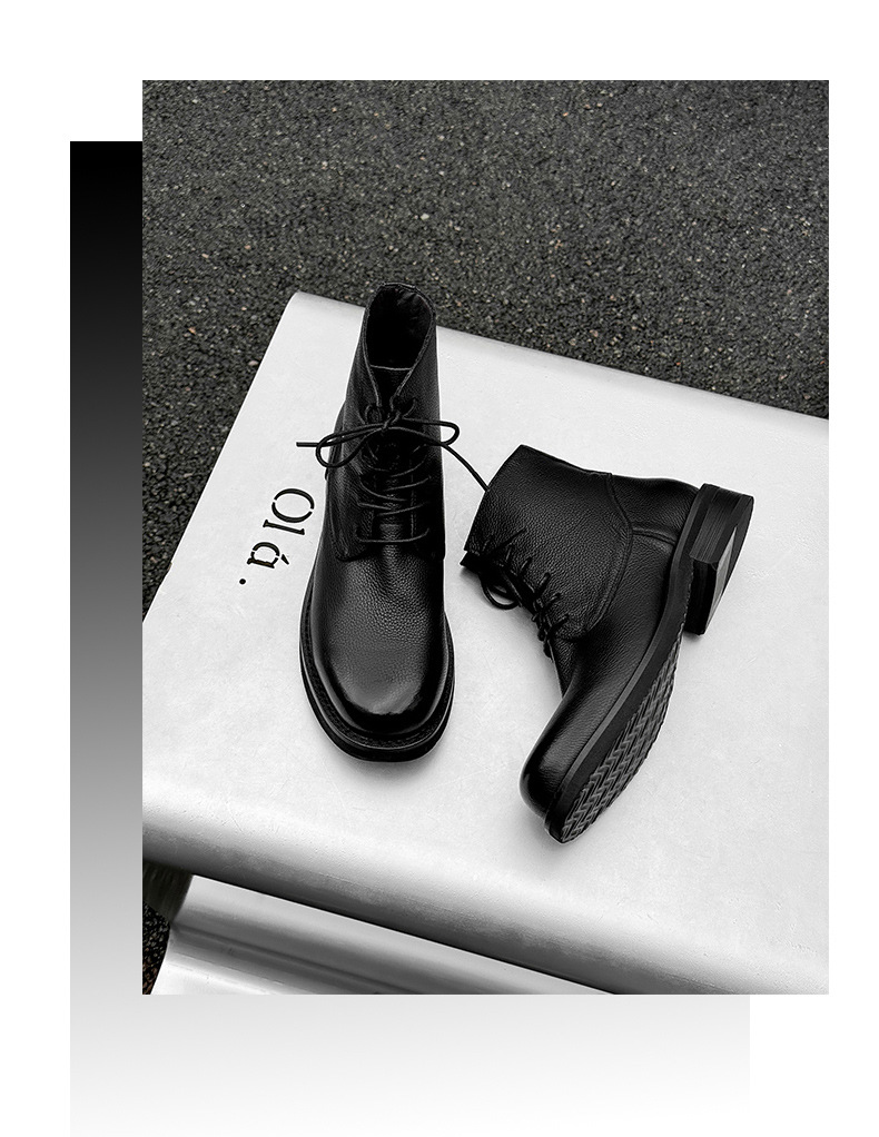 영국 스타일 레트로 툴링 부츠 두꺼운 밑창 증가 레이스 업 올매치 캐주얼 솔리드 컬러 한국 스타일 심플 스타일 디자인 마틴 부츠