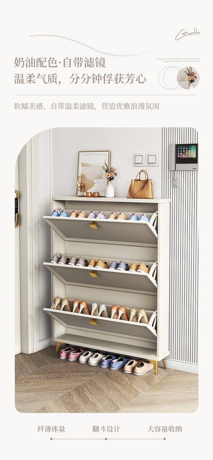 크림 초박형 티핑 신발 캐비닛 가정용 문 외부 문 벽 입구 캐비닛 대용량 현대 간단한 신발 랙
