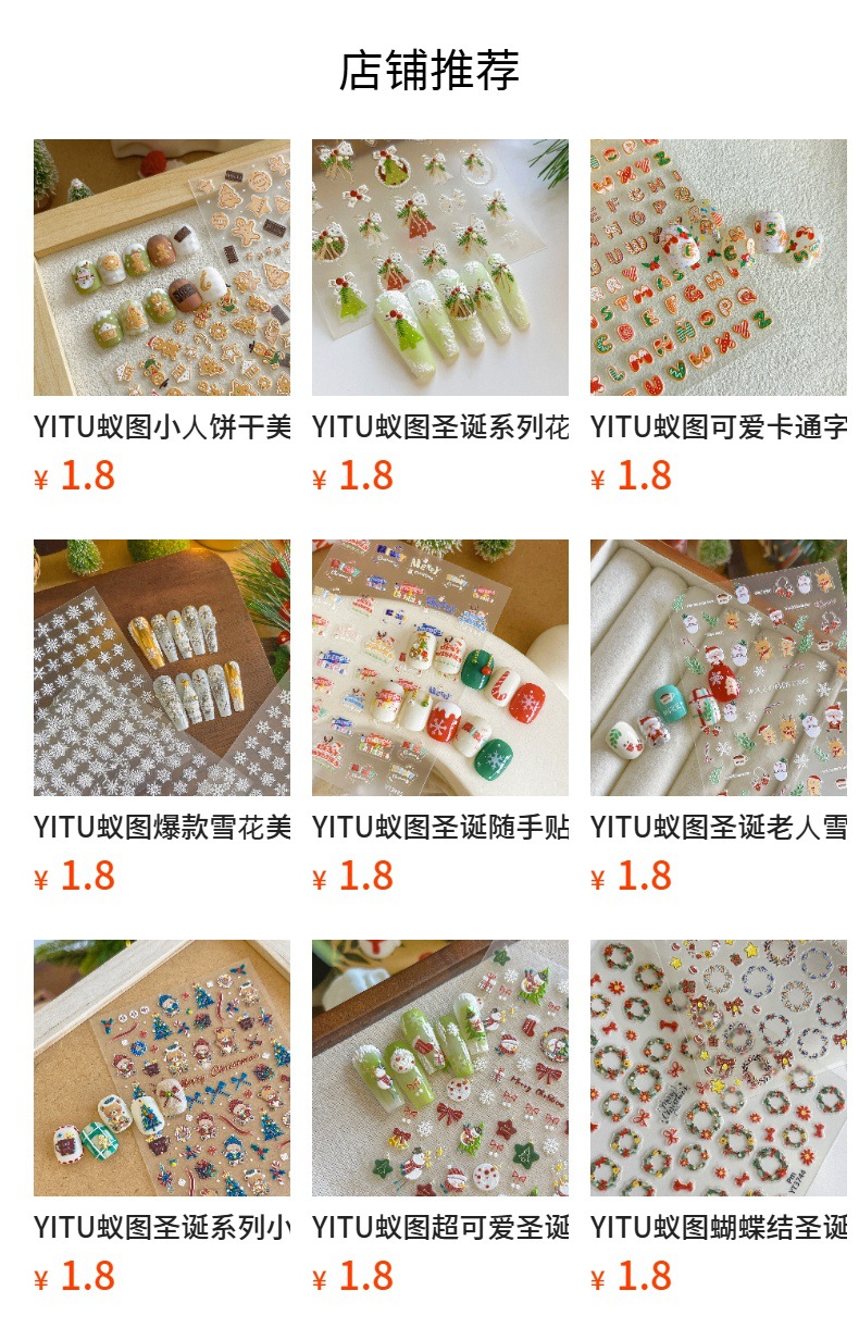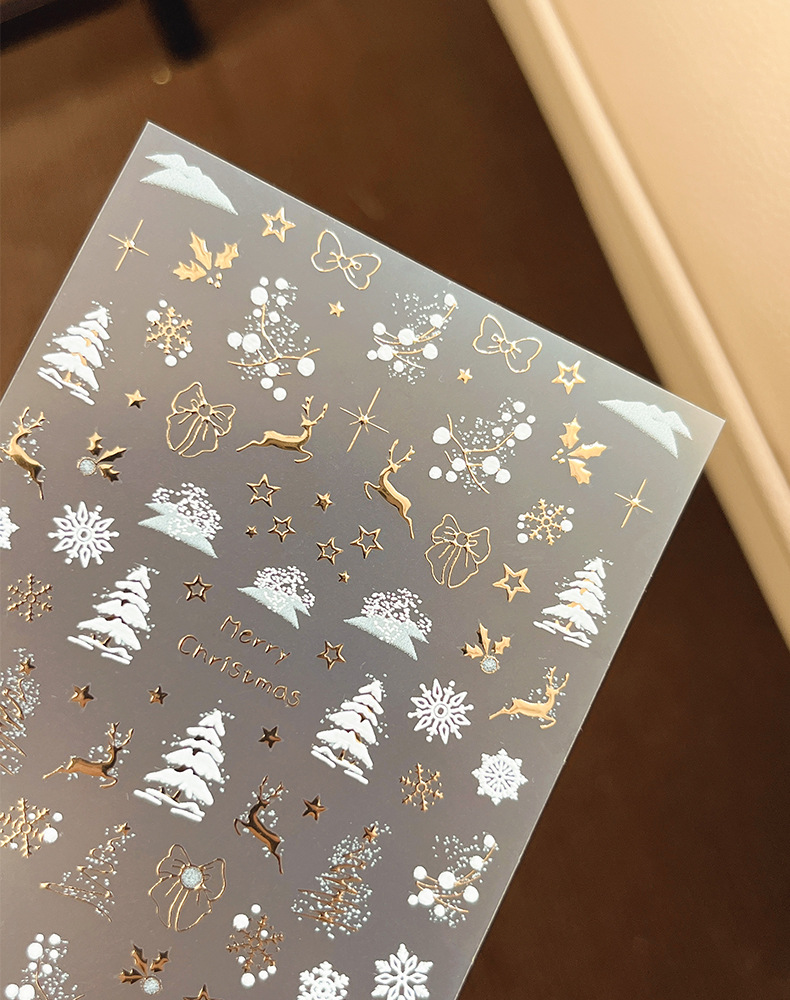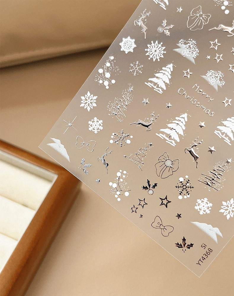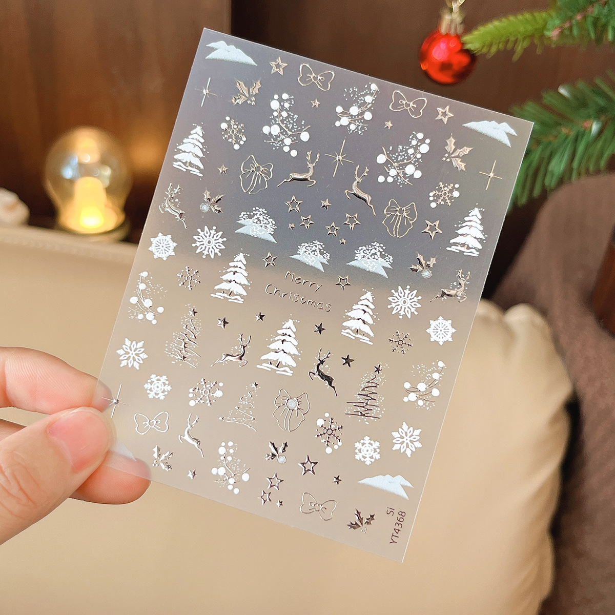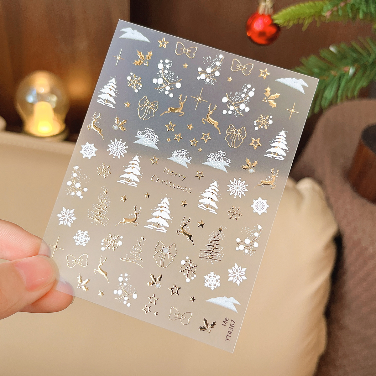 YITU 개미 그림 핫 스탬핑 골드 및 실버 크리스마스 네일 아트 스티커 눈송이 엘크 릴리프 접착 네일 장식 스티커 YT4367스토어 가기