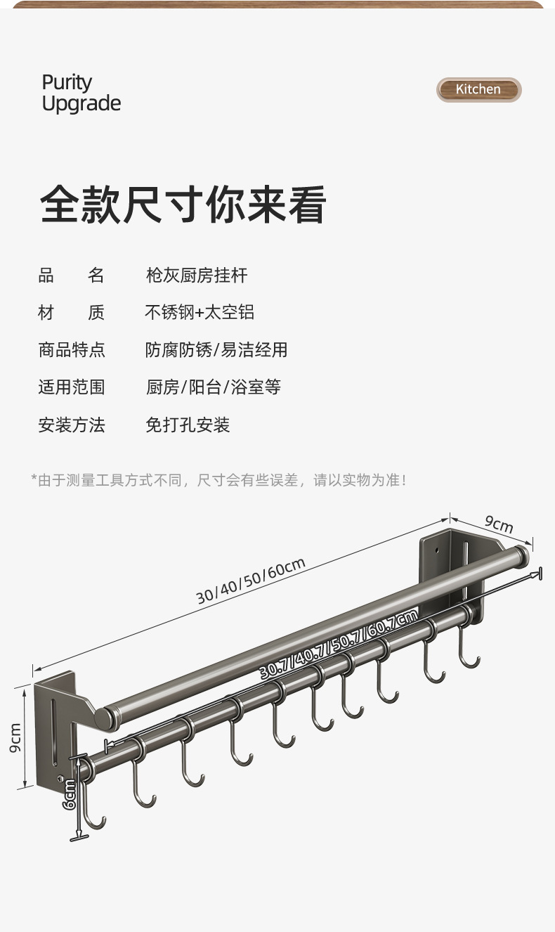 • 건그레이 스테인레스 스틸 행거 50cm8 후크