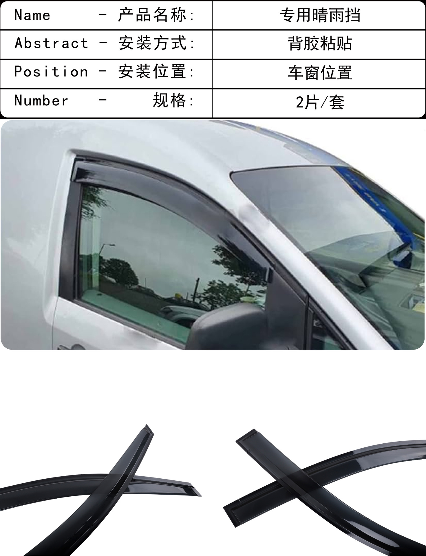 비 아크릴 자동차 비 방패를 방지하기 위해 2005-2018 폭스 바겐 캐디 창문의 국경 간 적용