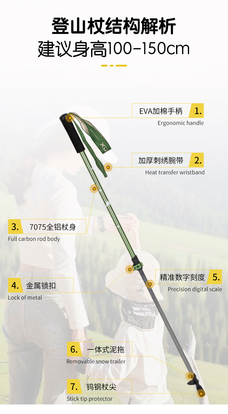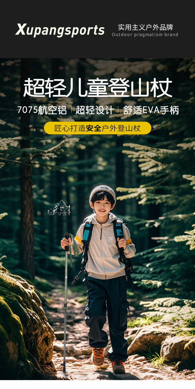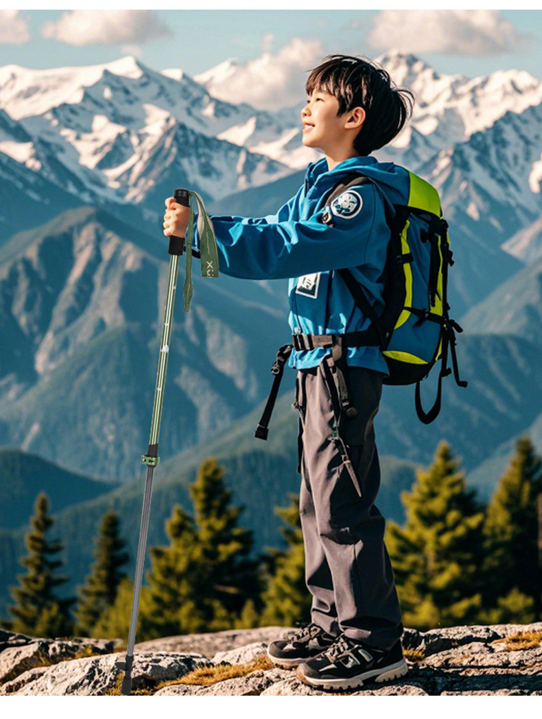 [전문 안전] 어린이 야외 하이킹 등반 스틱 초경량 알루미늄 합금 망원경 걷는 지팡이 등반 장비