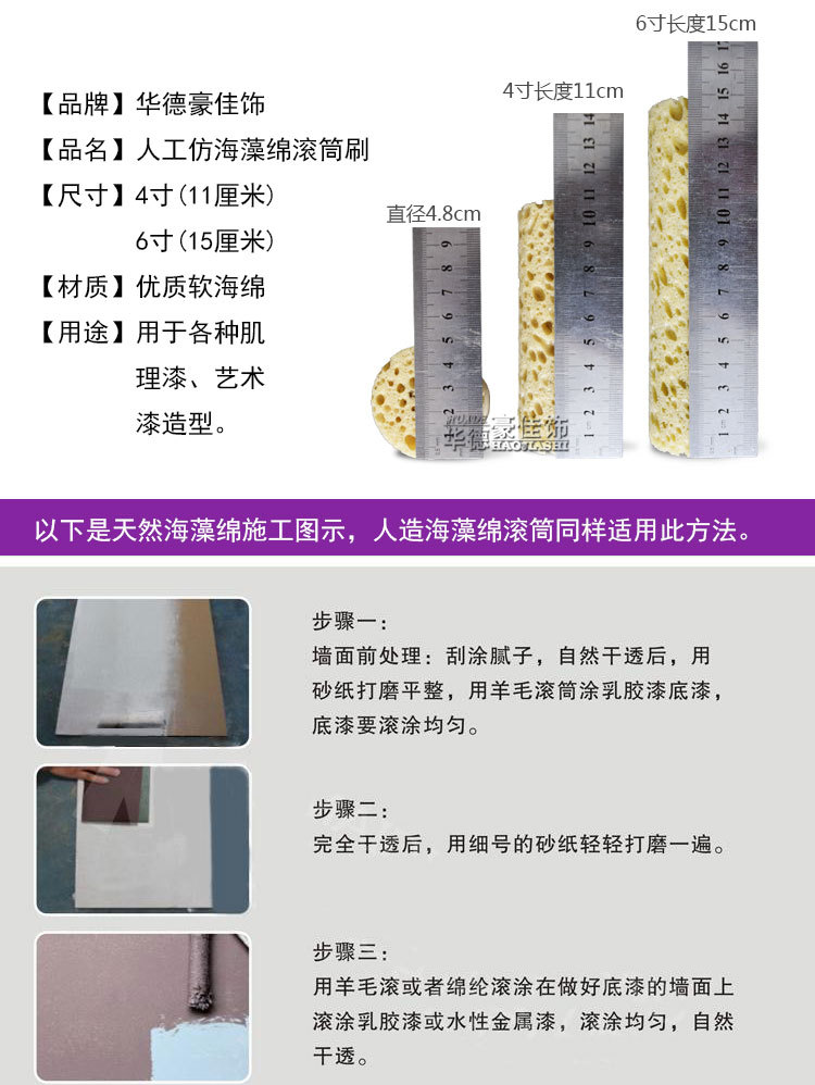 4 인치 6 인치 인공 모조 해초 면 롤러 브러시 3 색 진주 매직 컬러 아트 페인트 질감 도구