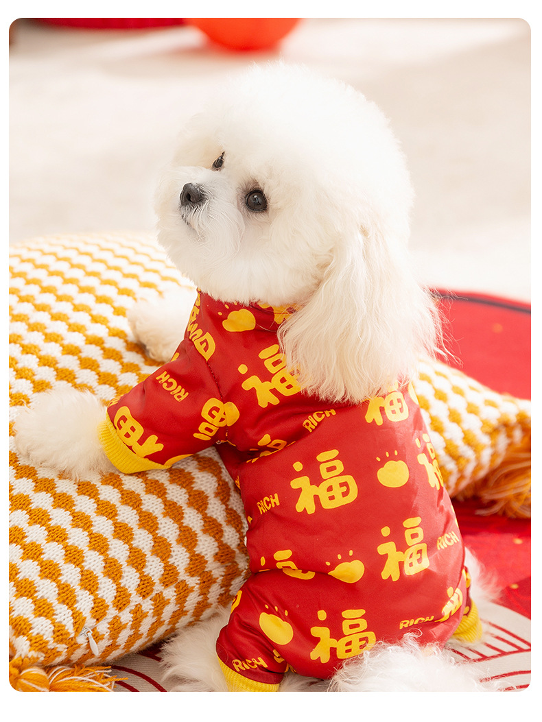 개 새해의 축복받은 캐릭터 전체 인쇄 견인 4 다리 면화-패딩 코트 두꺼운 따뜻한 테디 베어 중소 개 애완 동물 옷