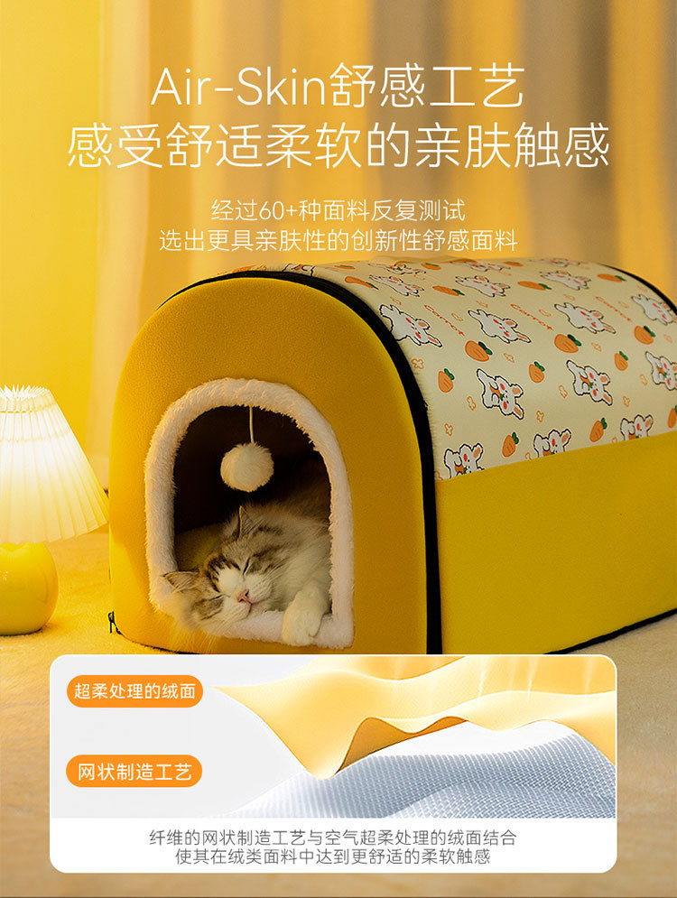 가을과 겨울에 고양이 둥지가 두꺼운 따뜻한 고양이 집 다채로운 풀 프린트 아크 하우스 둥지 폐쇄 안전한 고양이 빌라