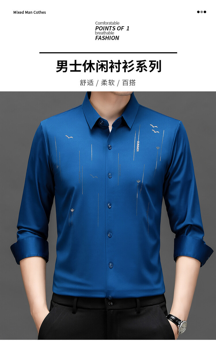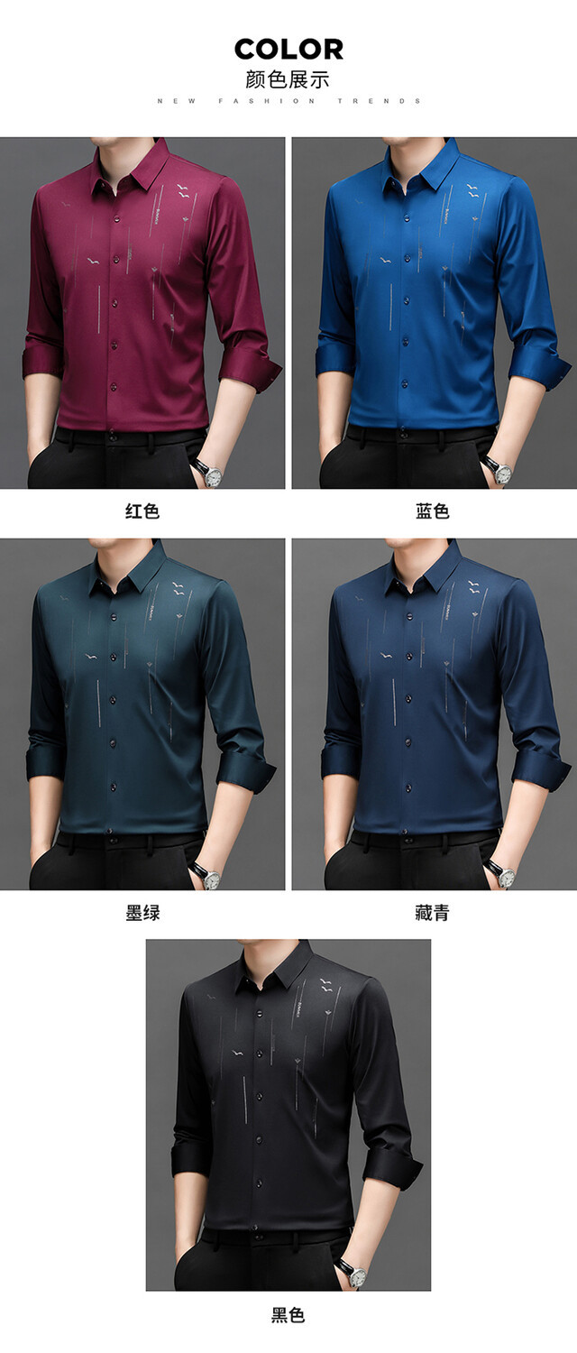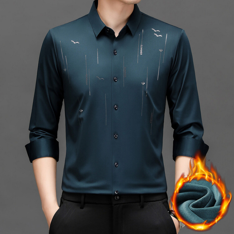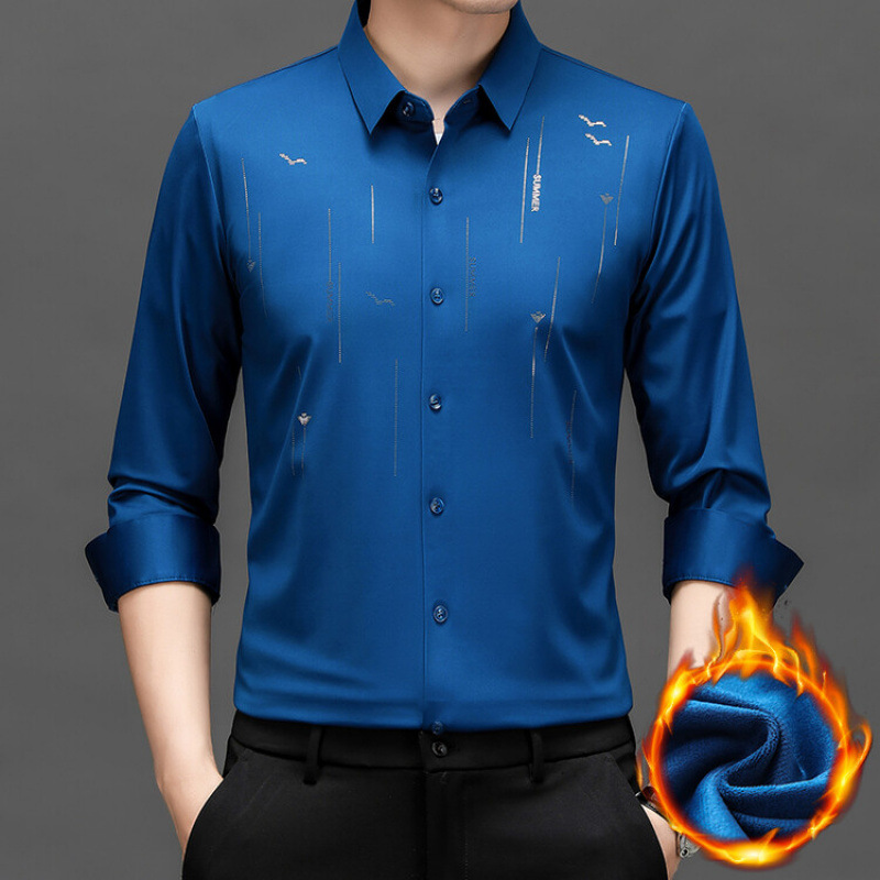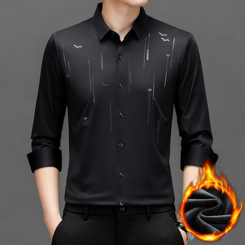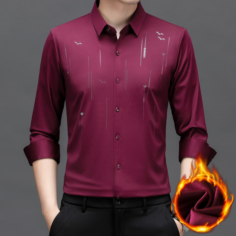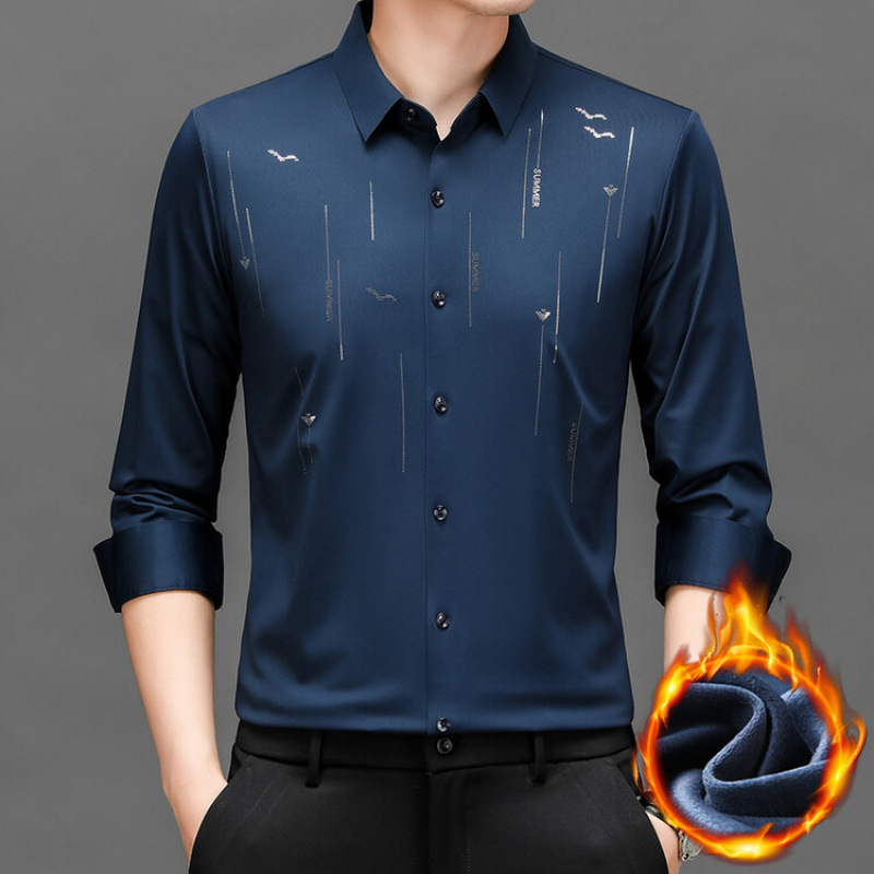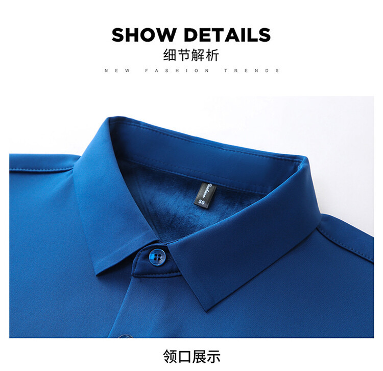 기모 두꺼운 따뜻한 셔츠 남성용 탄성 주름 방지 2024 가을 및 겨울 새로운 캐주얼 단색 긴 소매 남성용 셔츠