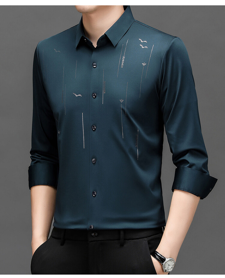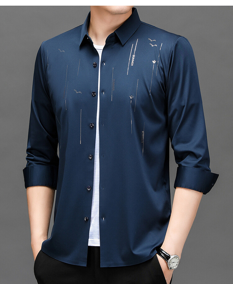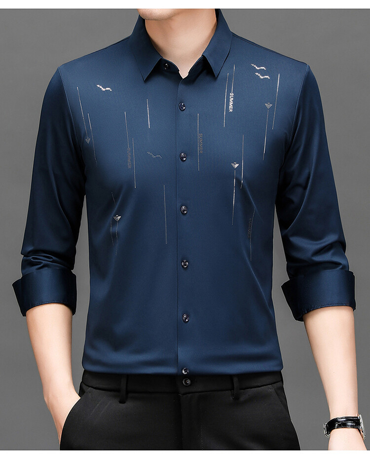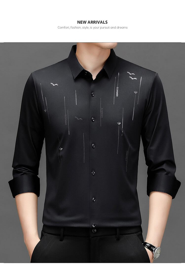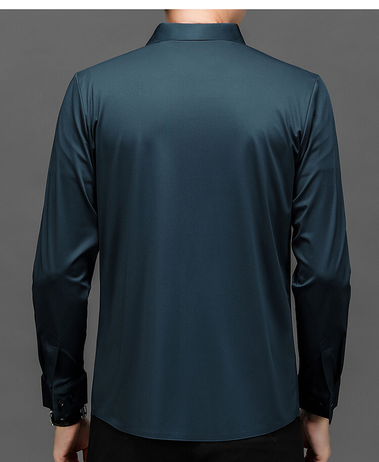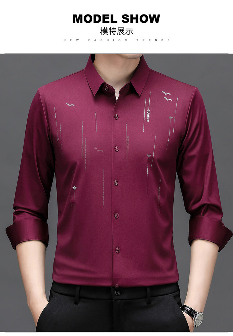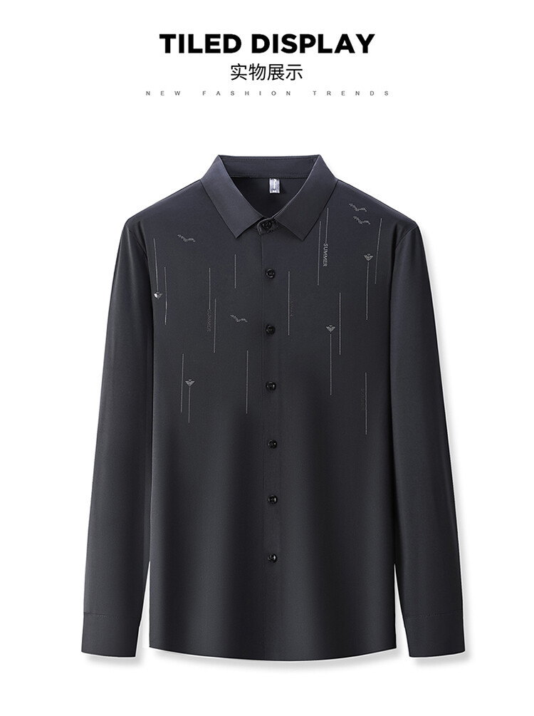 기모 두꺼운 따뜻한 셔츠 남성용 탄성 주름 방지 2024 가을 및 겨울 새로운 캐주얼 단색 긴 소매 남성용 셔츠
