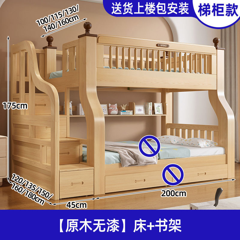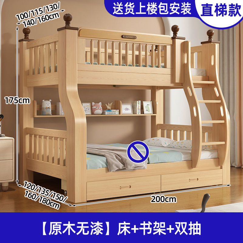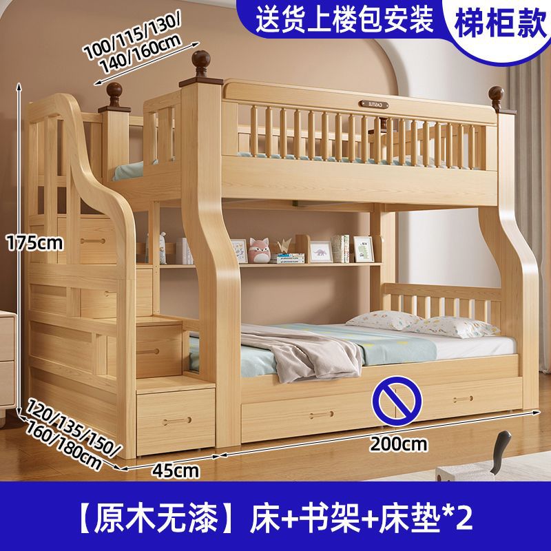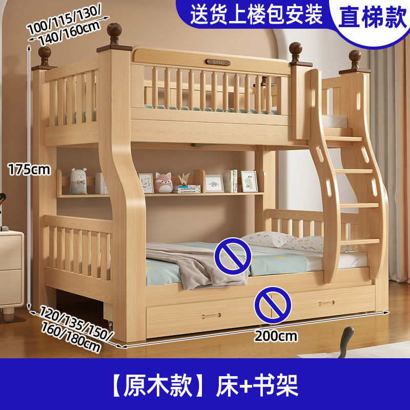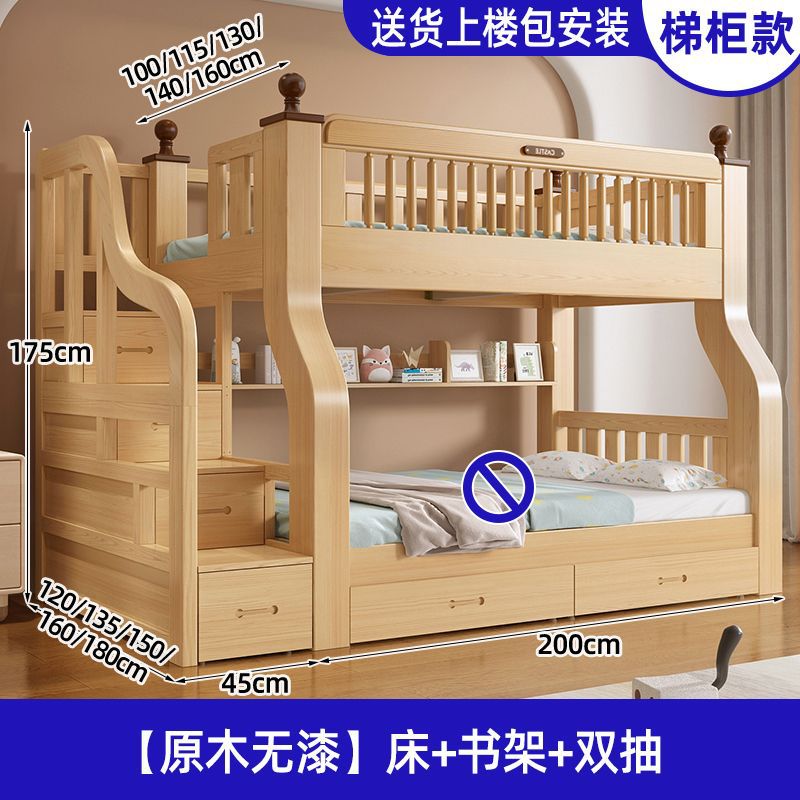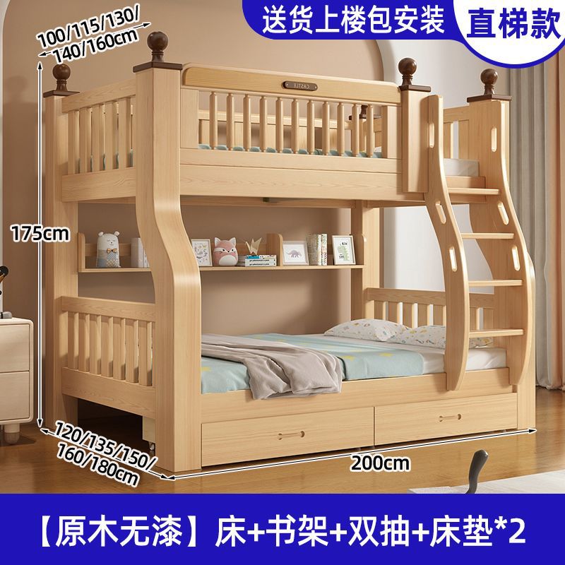 솔리드 우드 벙크 침대 벙크 침대 성인 하이 로우 침대 벙크 침대 작은 아파트 어린이 침대 조합 다기능 어린이 침대스토어 가기