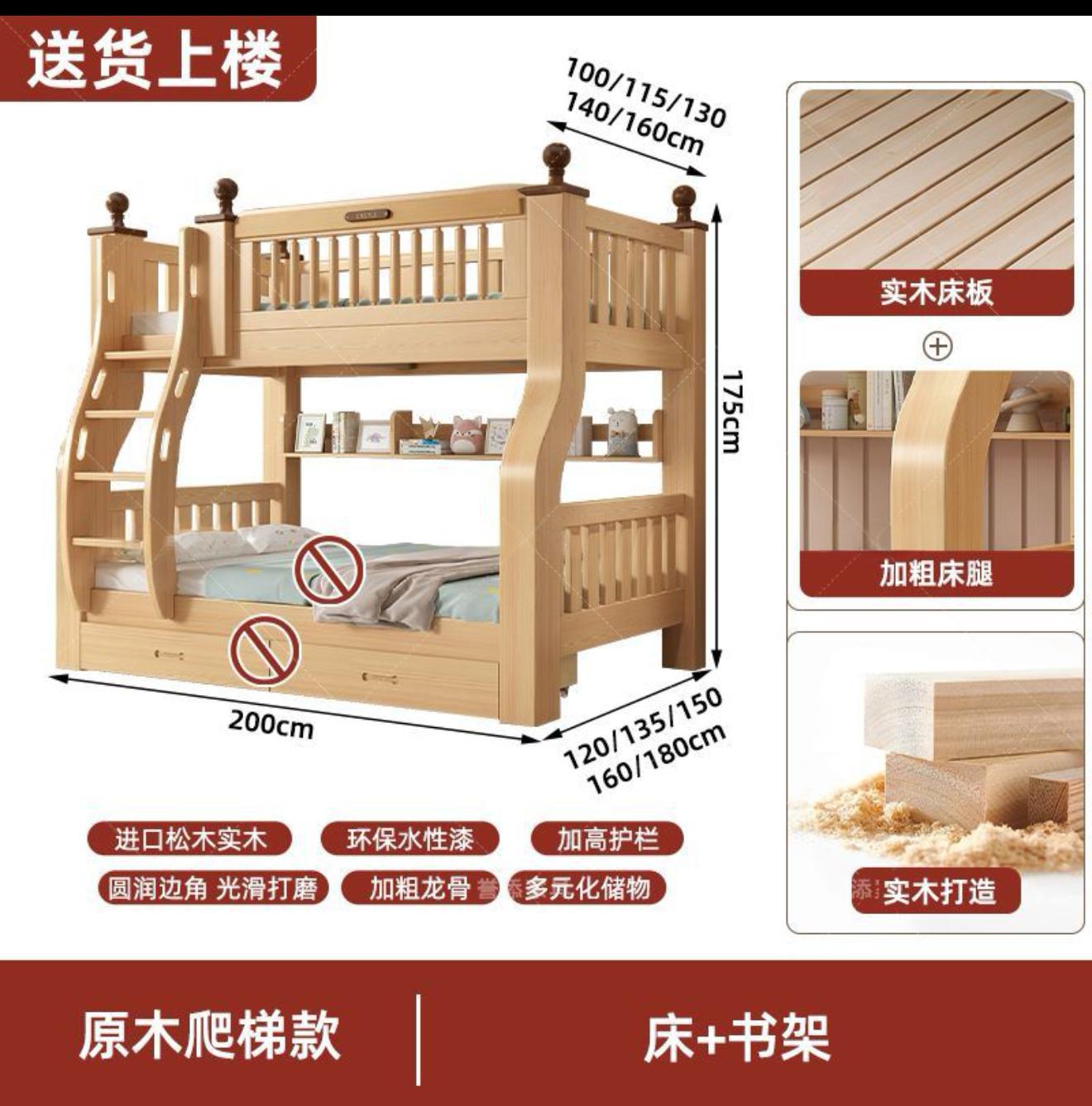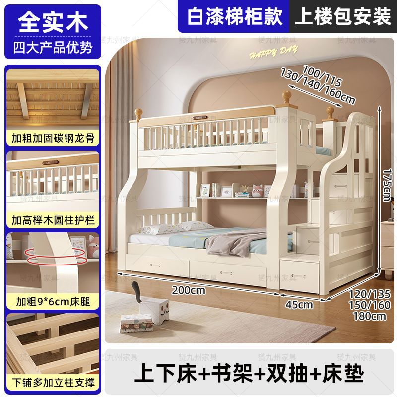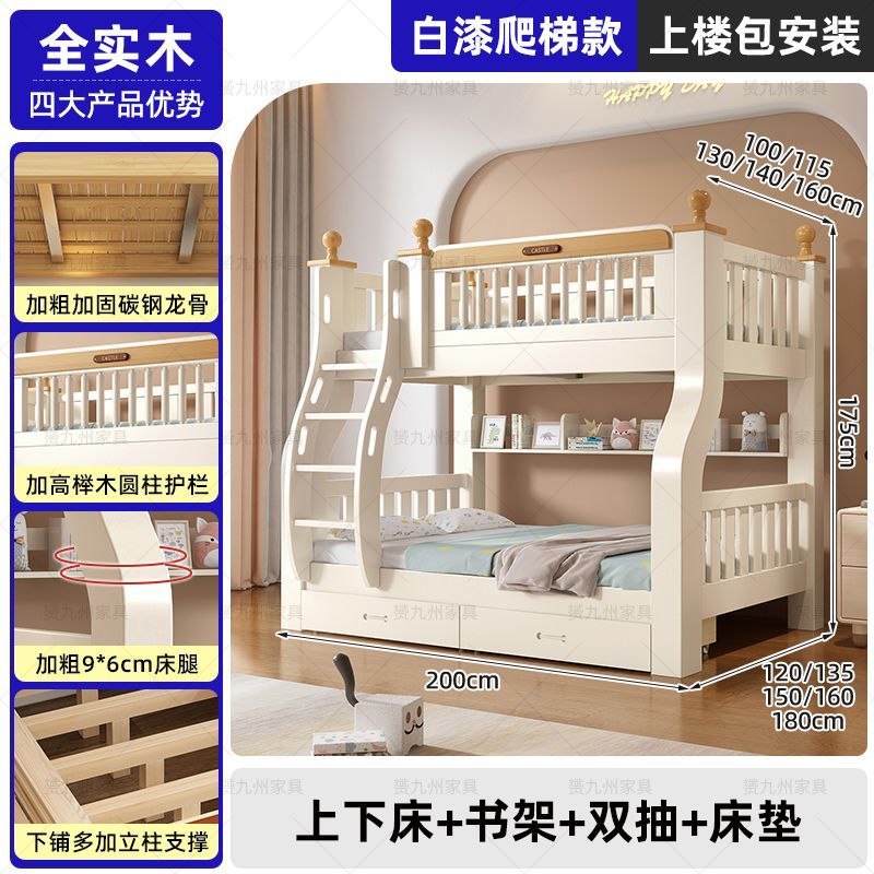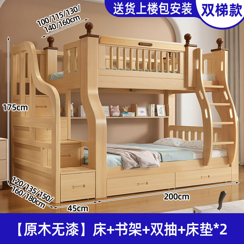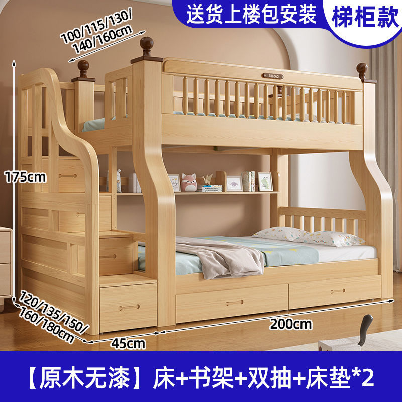 솔리드 우드 벙크 침대 벙크 침대 성인 하이 로우 침대 벙크 침대 작은 아파트 어린이 침대 조합 다기능 어린이 침대스토어 가기
